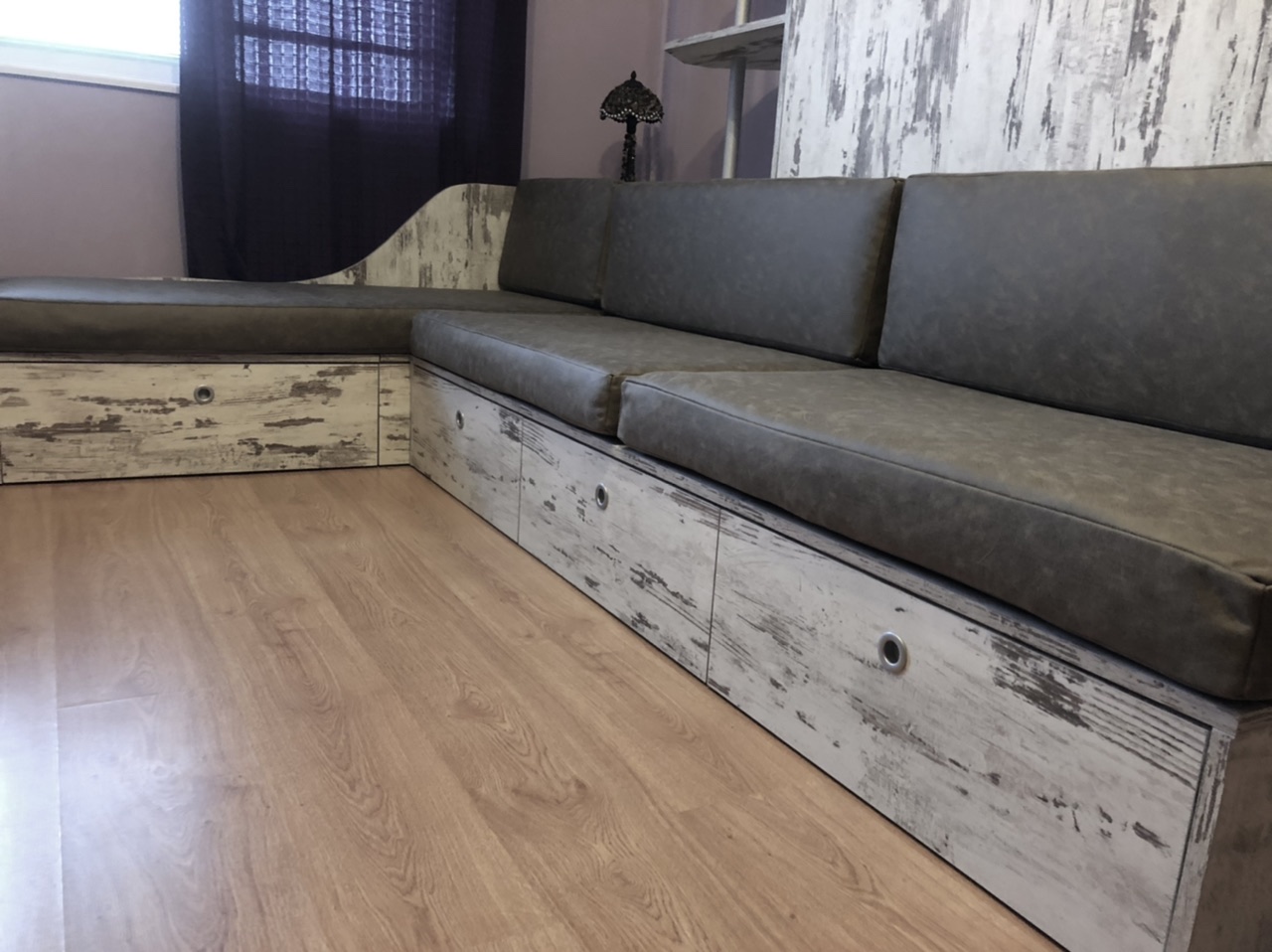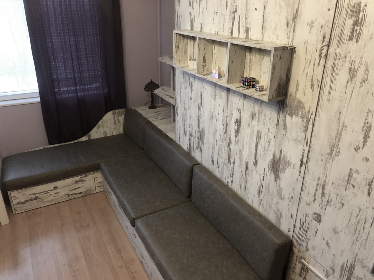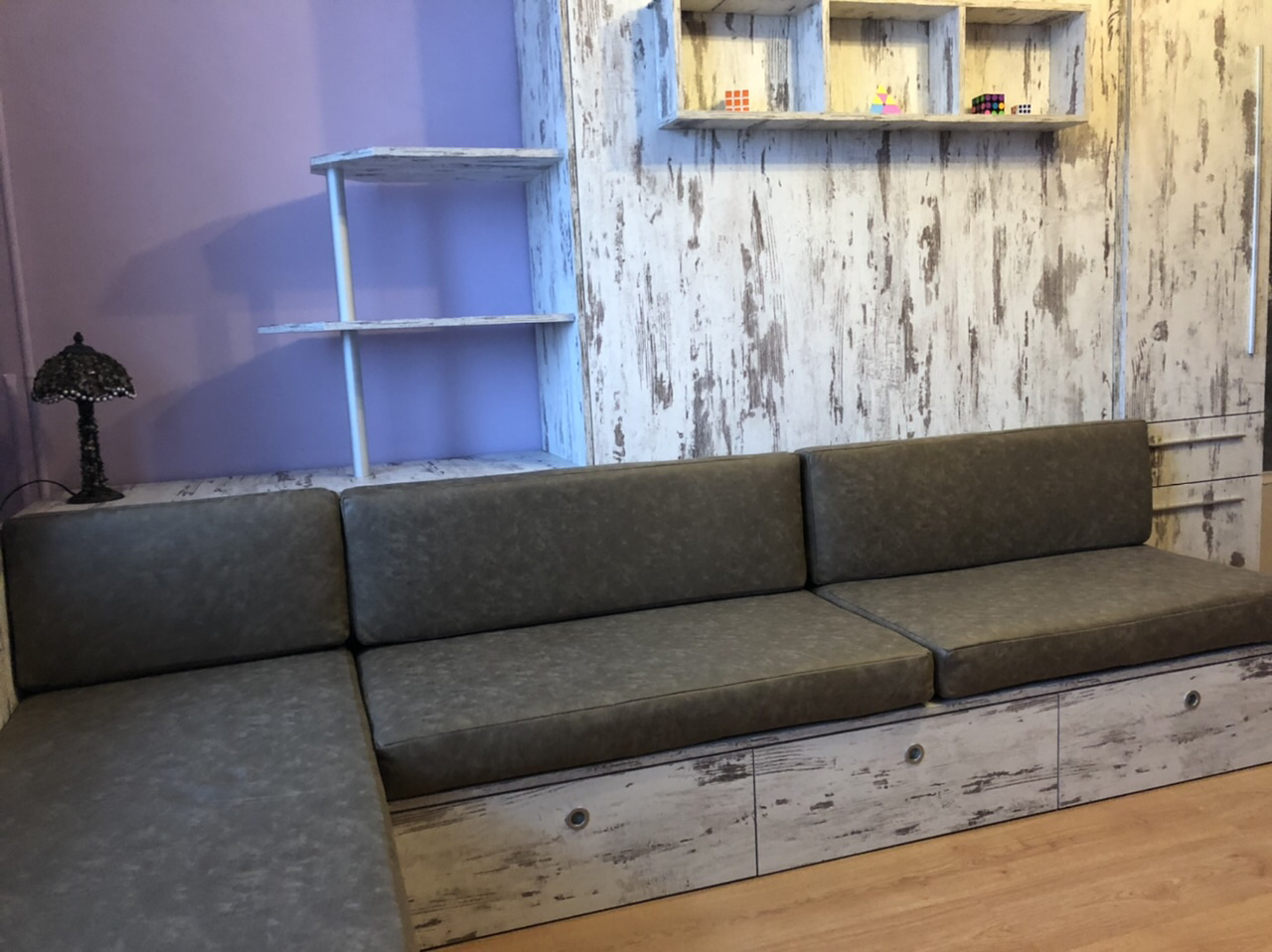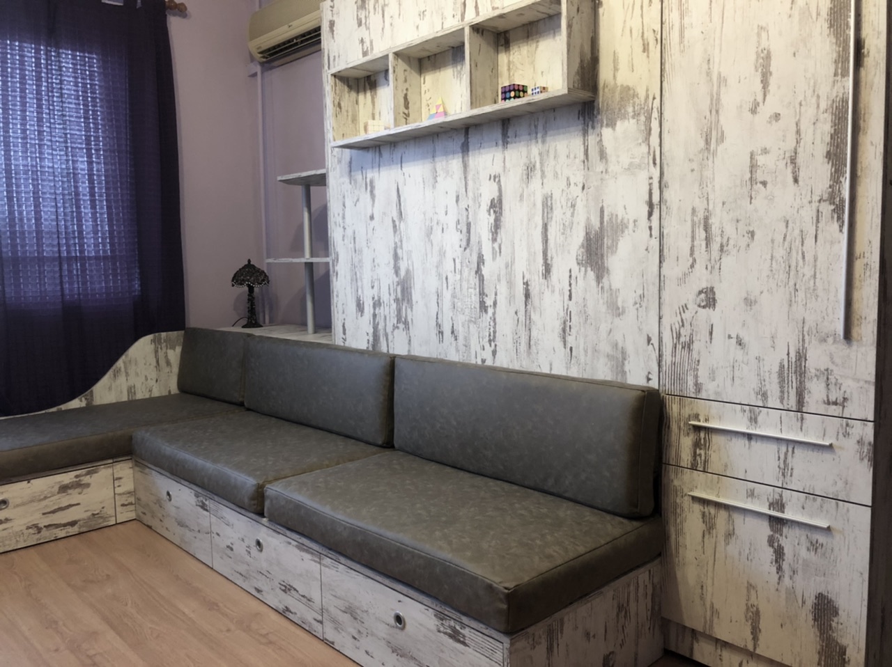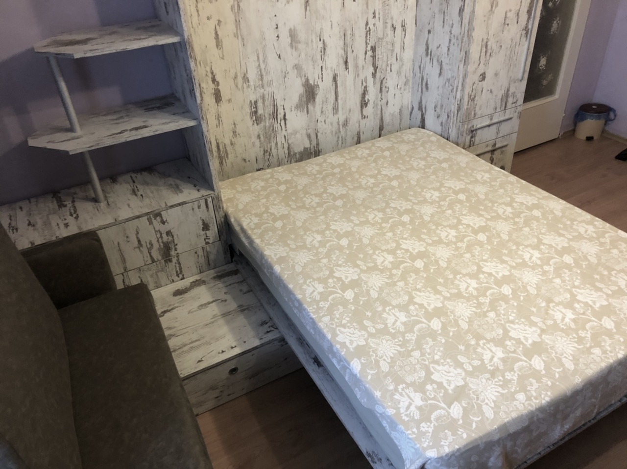 Падаща легло Стефани в комбинация с диван,ракла за завивки,чекмеджета и гардероб за дрехи.