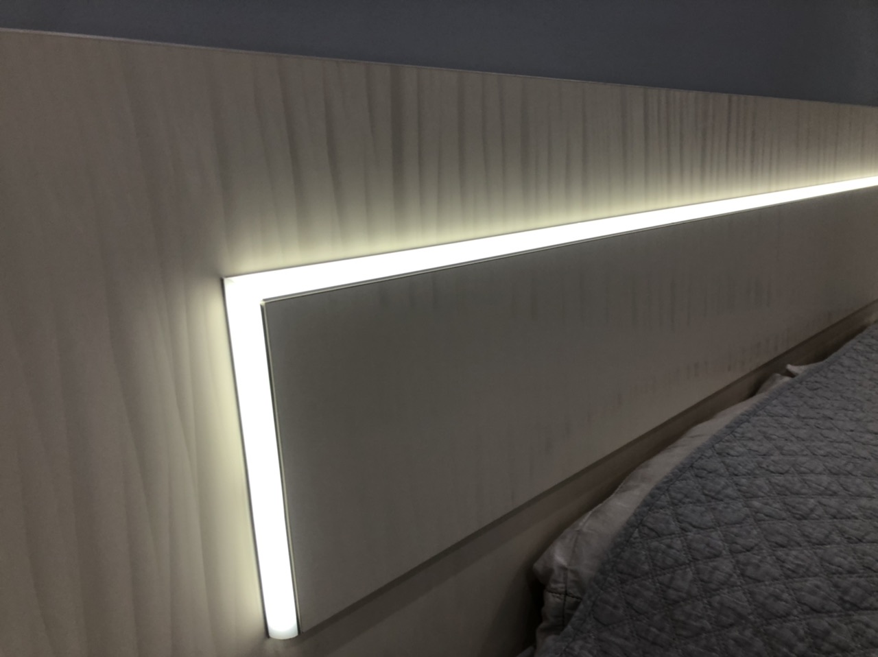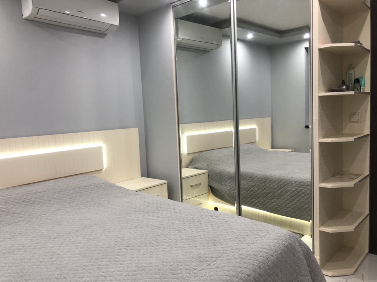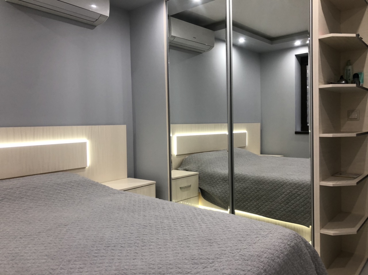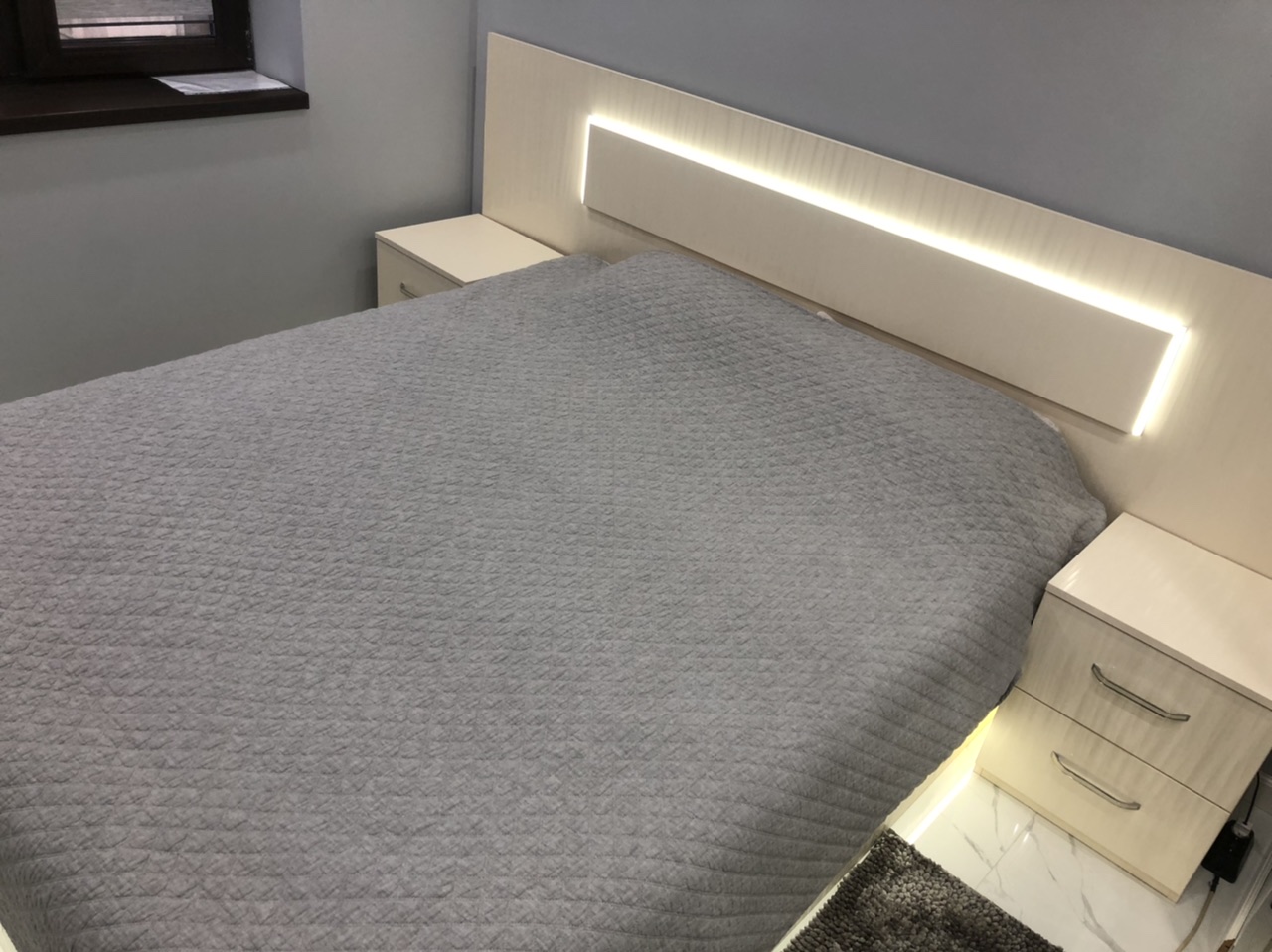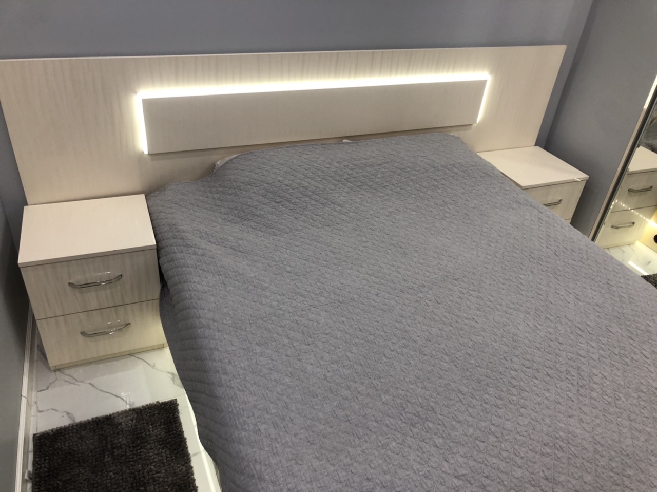 Спален комплект "Сахара" изцяло от МДФ Сахара, лед осветление и гардероб с плъзгащи врати
