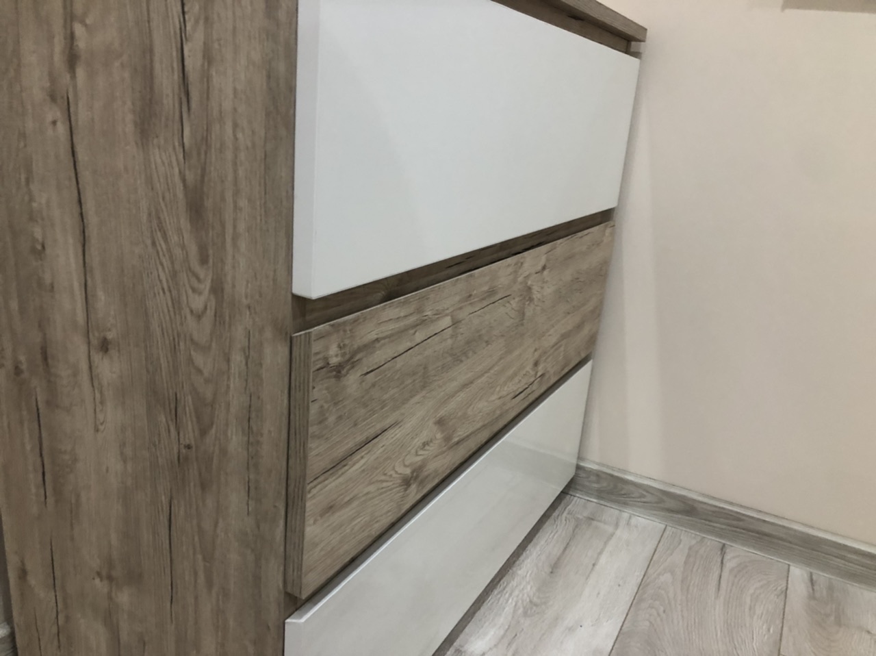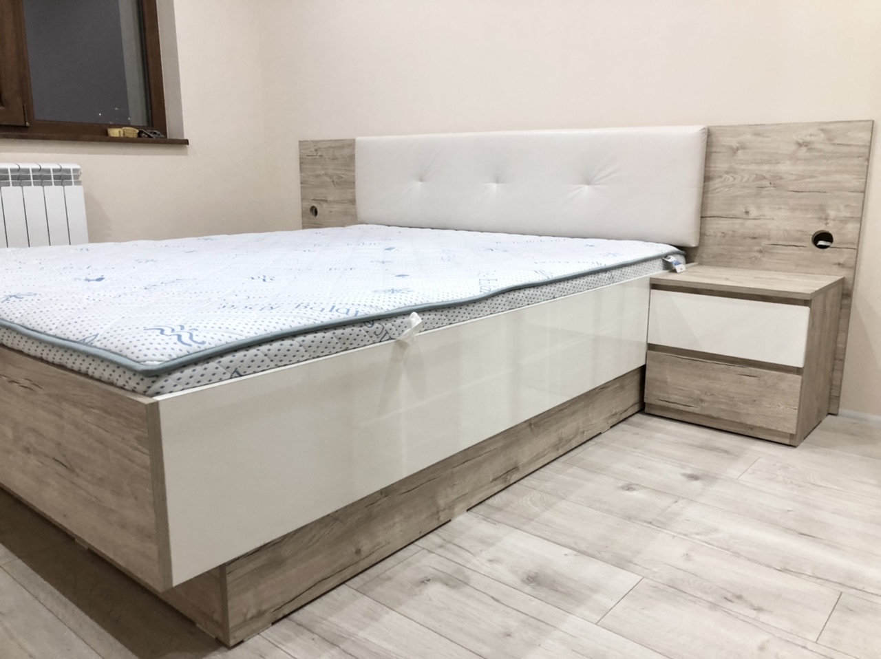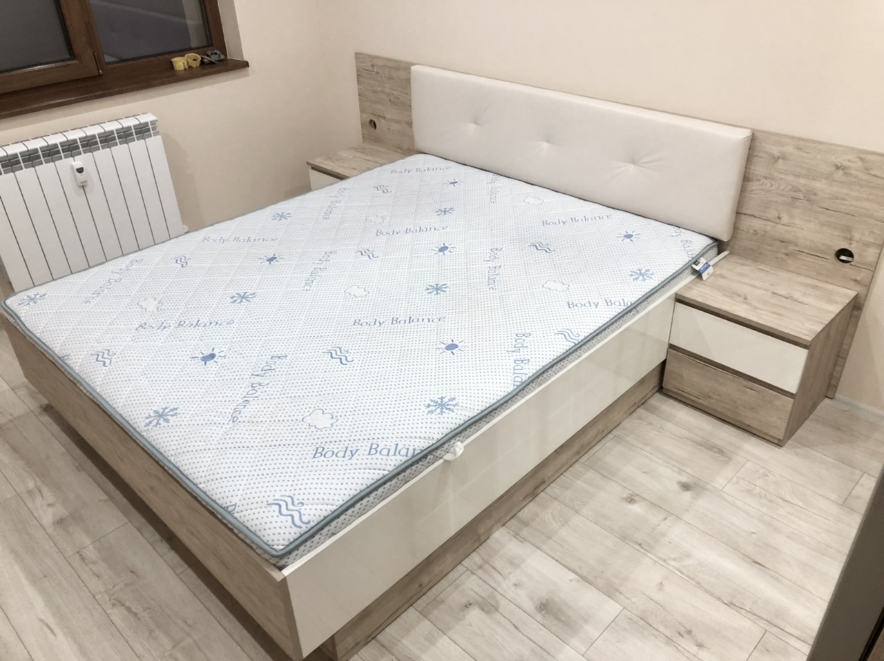 Спален комплект "Овиедо" е направен от МДФ Бианко и кафяво ЛПДЧ