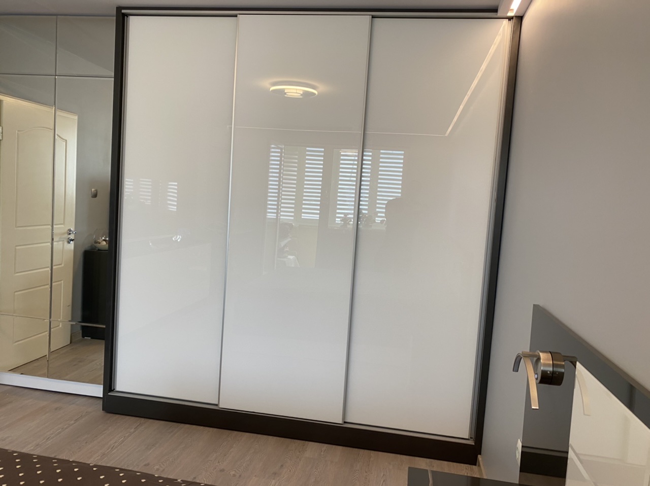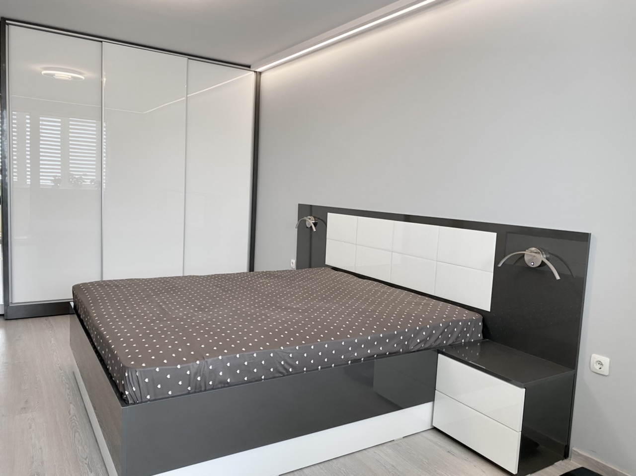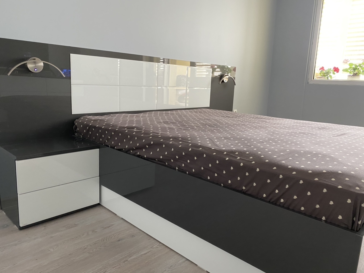 Спален комплект "Джовани " изработен от сив МДФ и бяло стъкло. Едно уникално съчетание и уникален луксозен ефект.