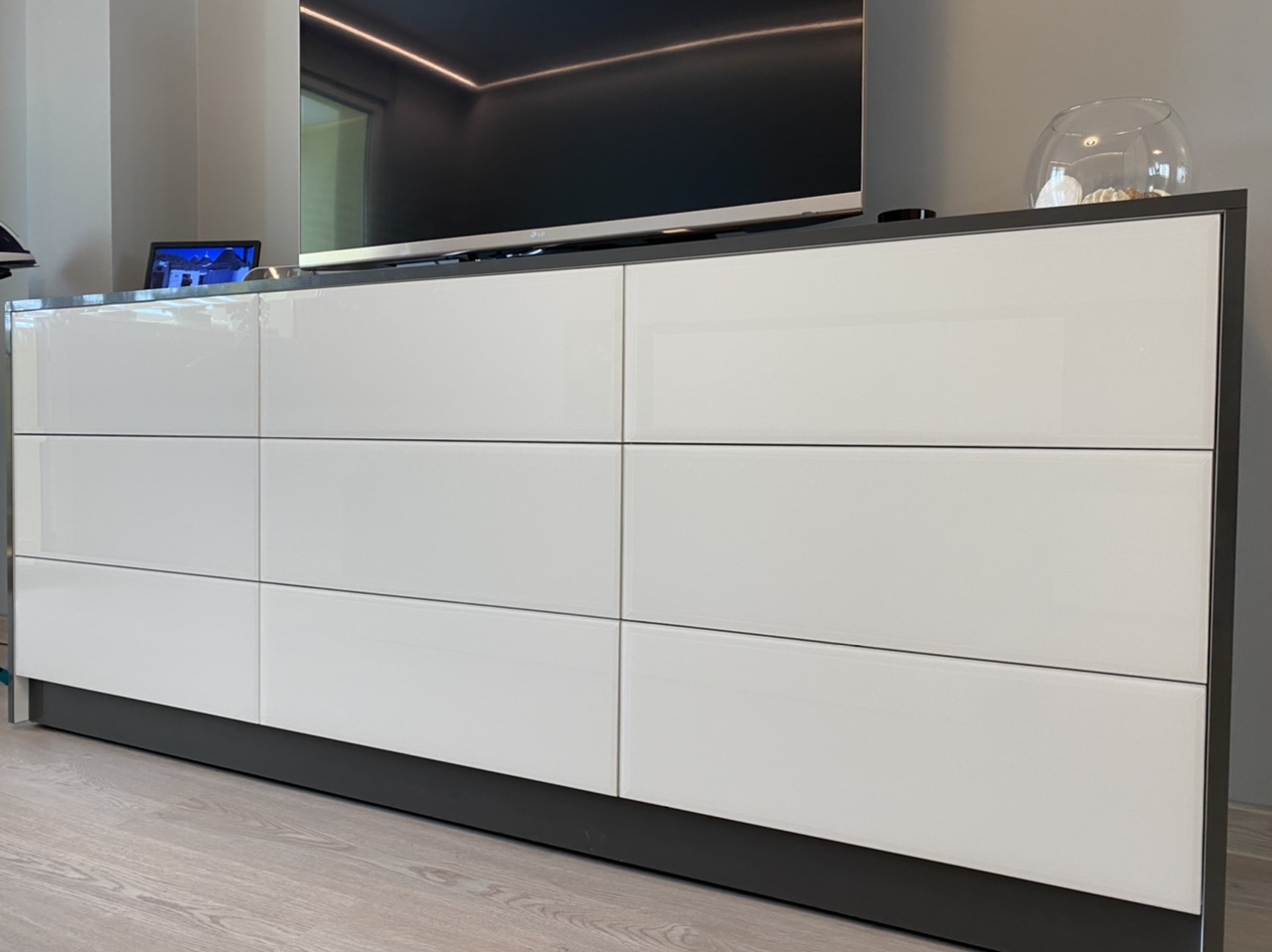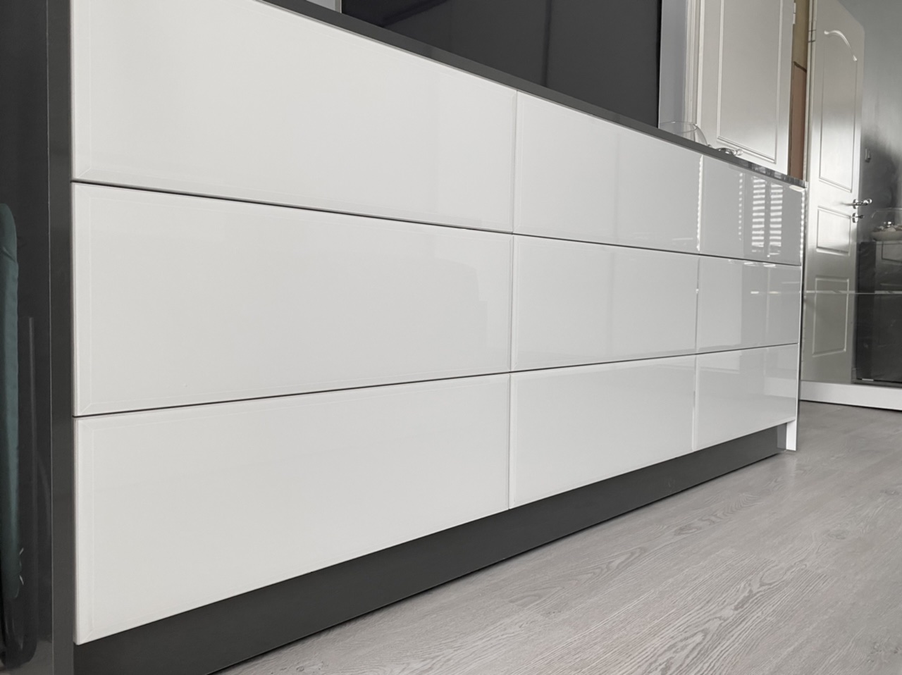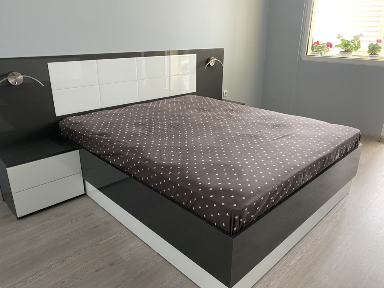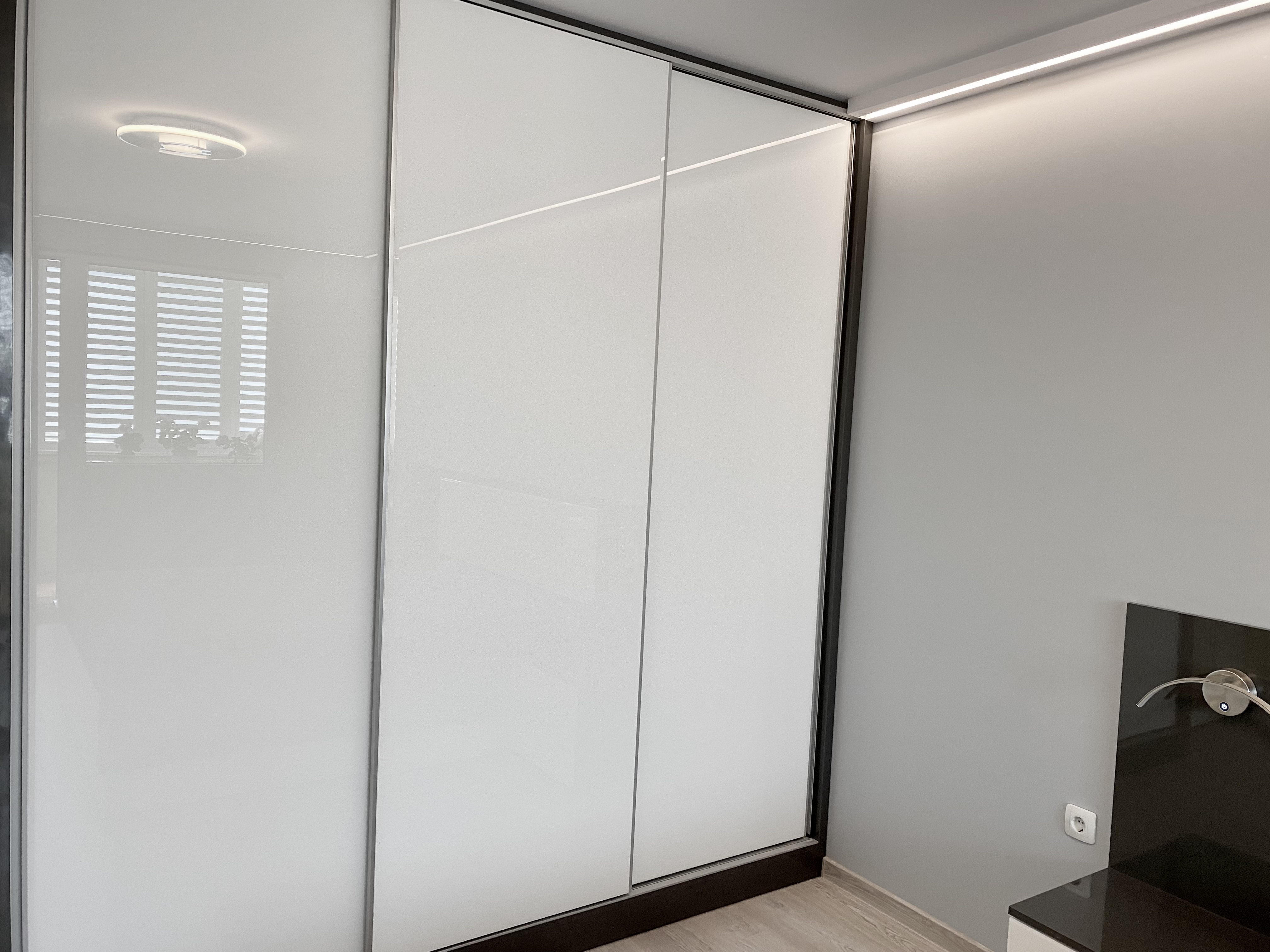 Спален комплект "Джовани " изработен от сив МДФ и бяло стъкло. Едно уникално съчетание и уникален луксозен ефект.