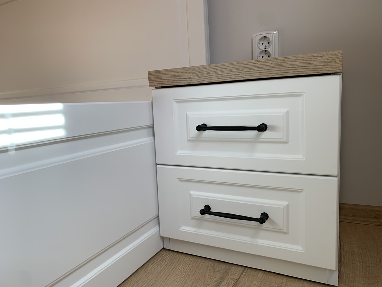 Спален комплект "Хамилтън", изработен от бял МДФ и ПДЧ - дървесен фурнир