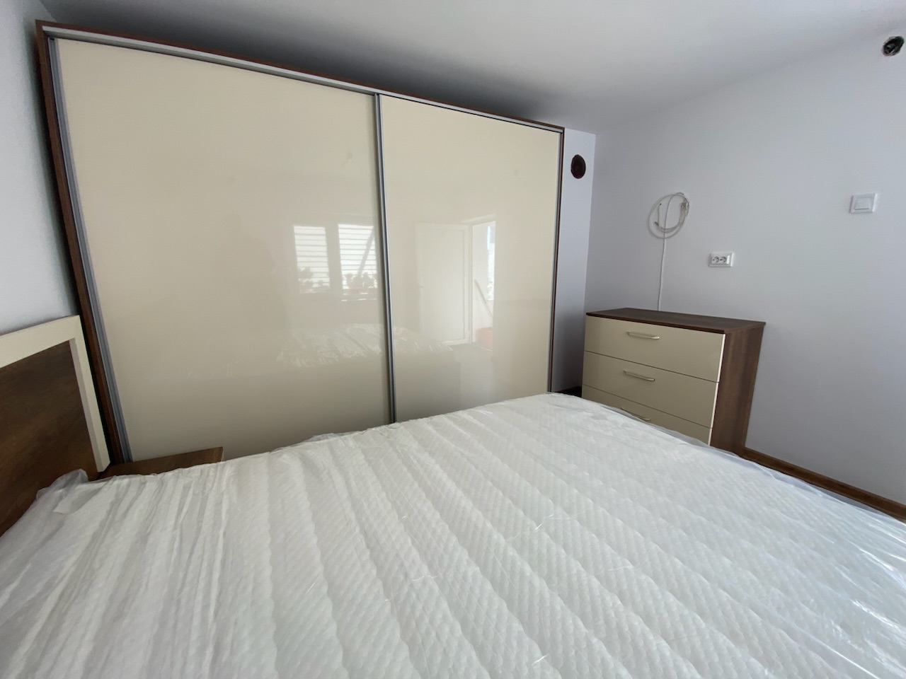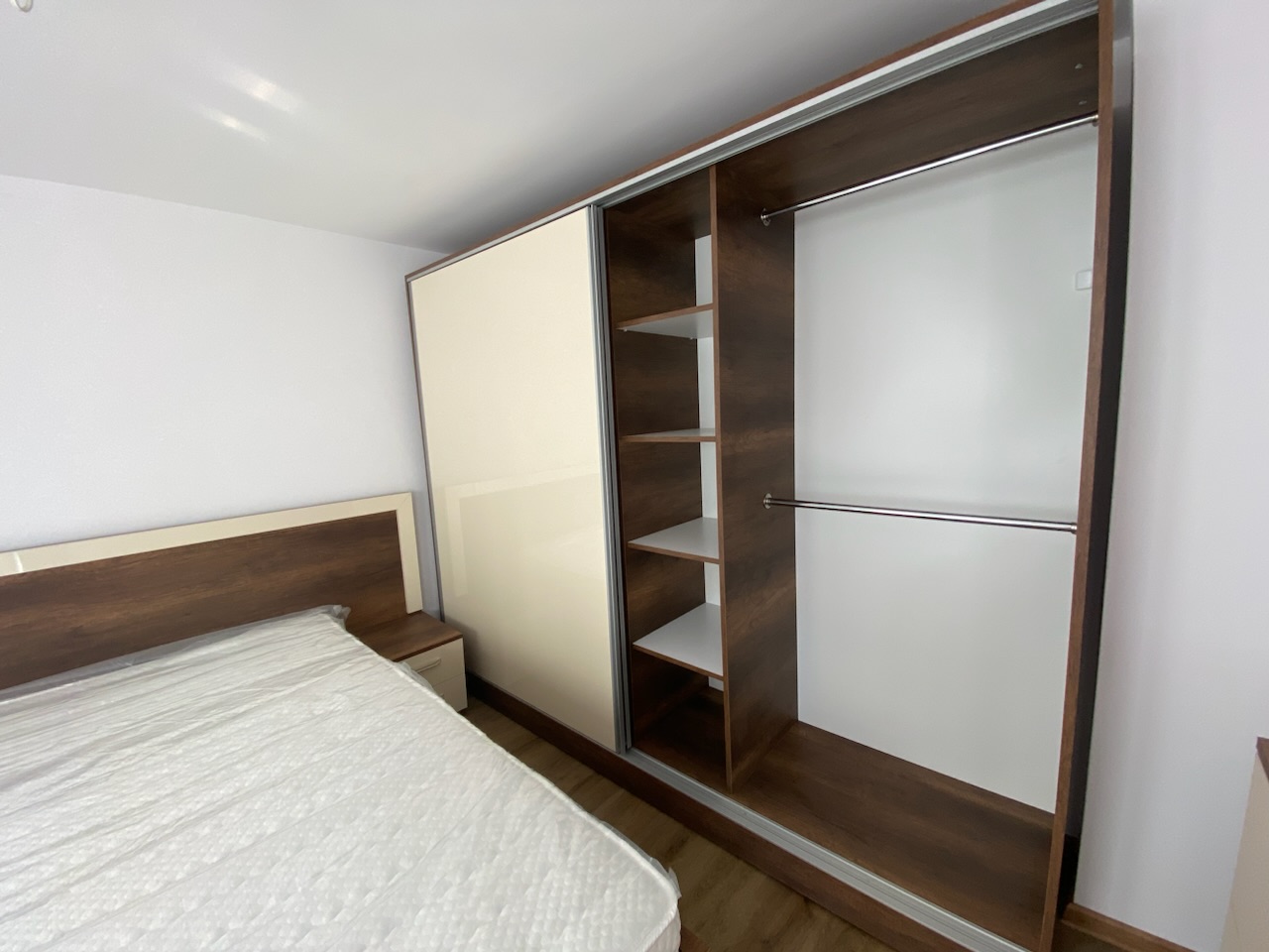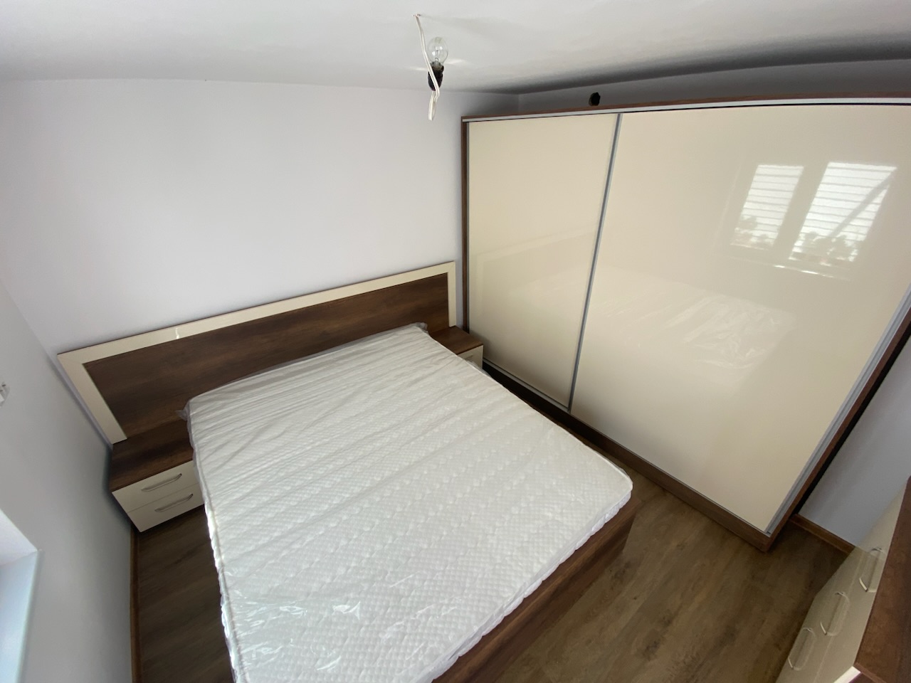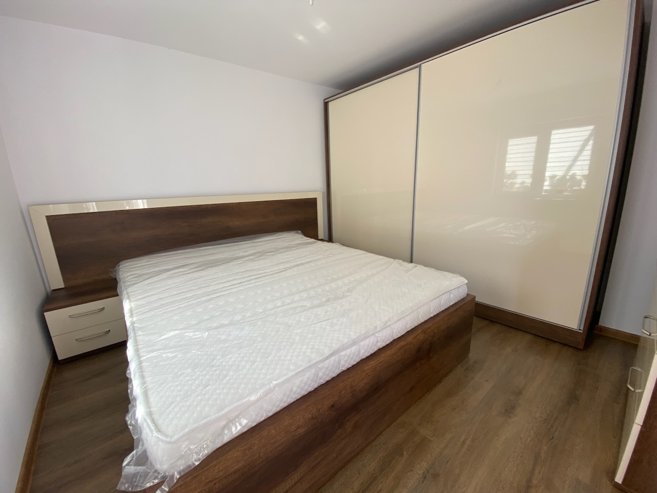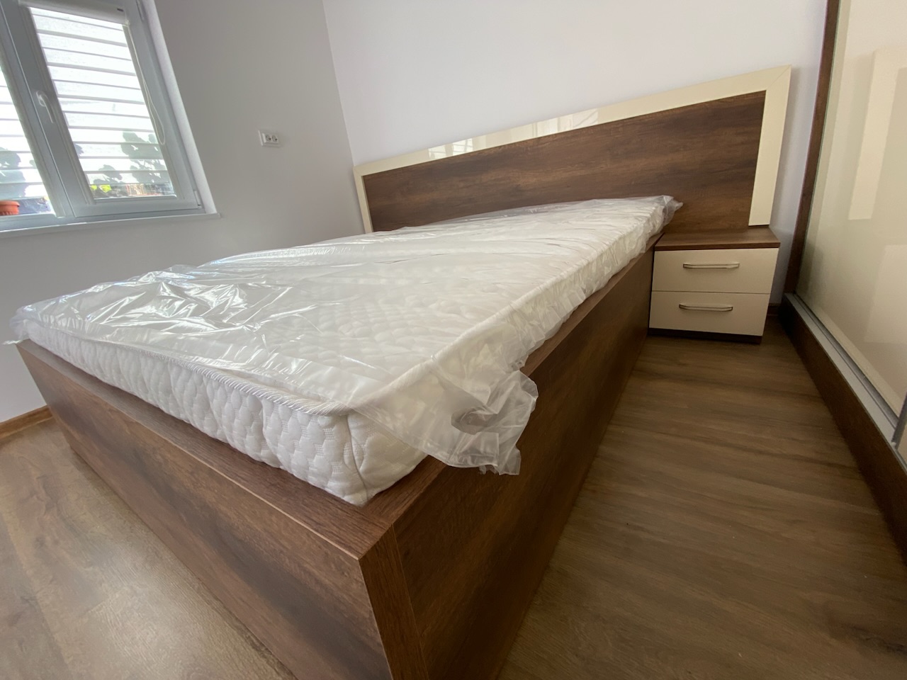Спален комплект "Малага", изработен от МДФ ванилия и ПДЧ кафяво кънтри