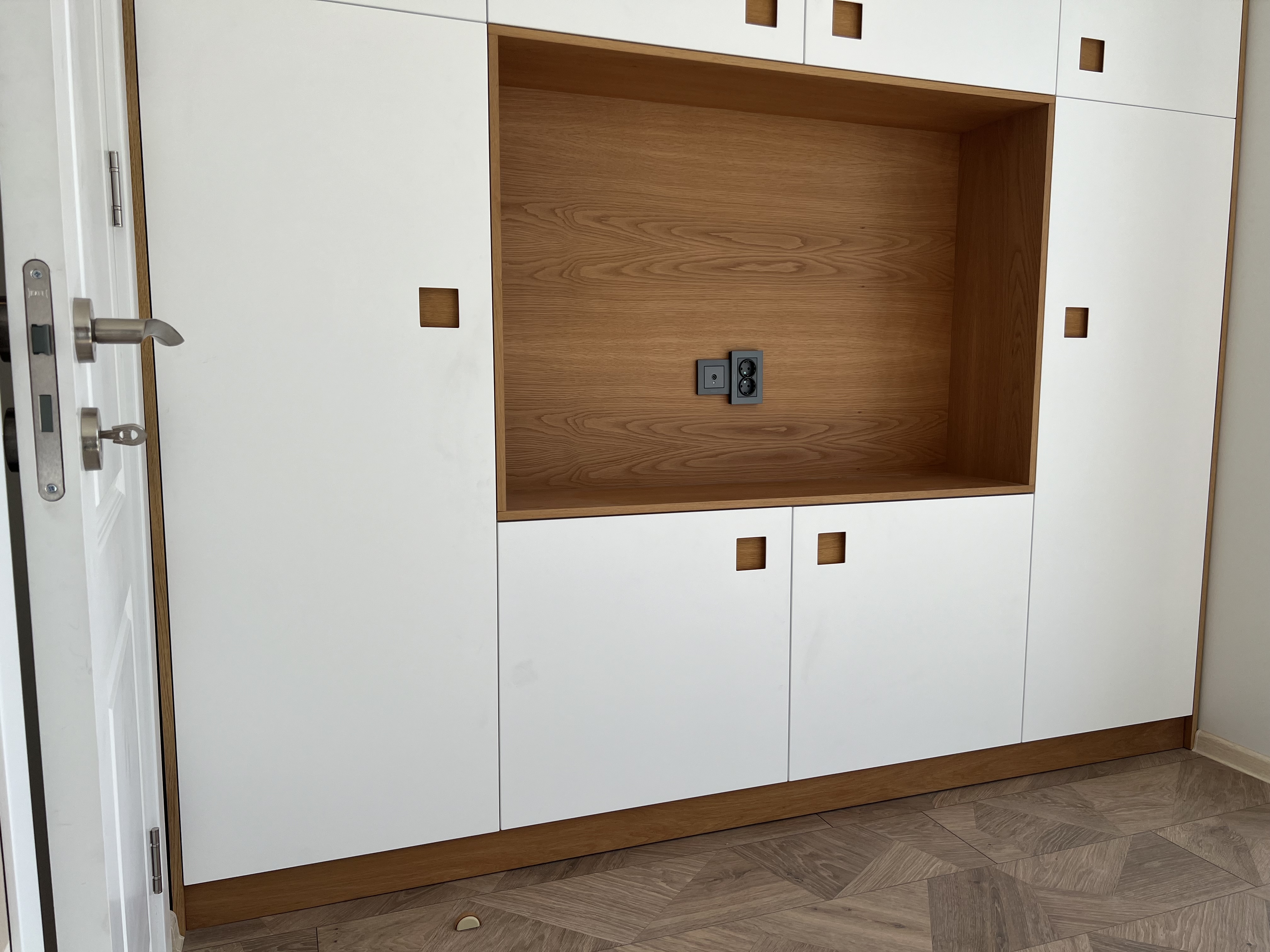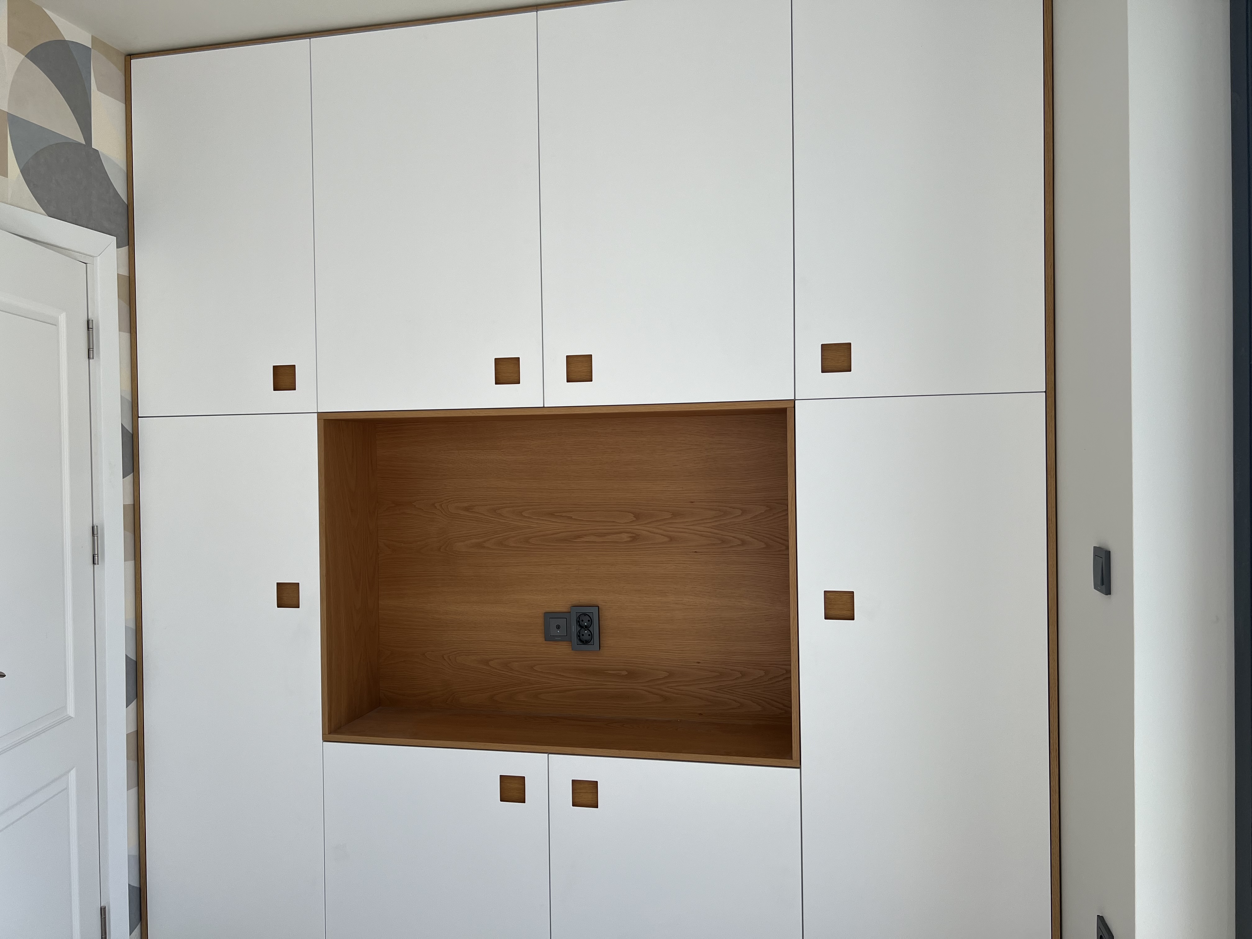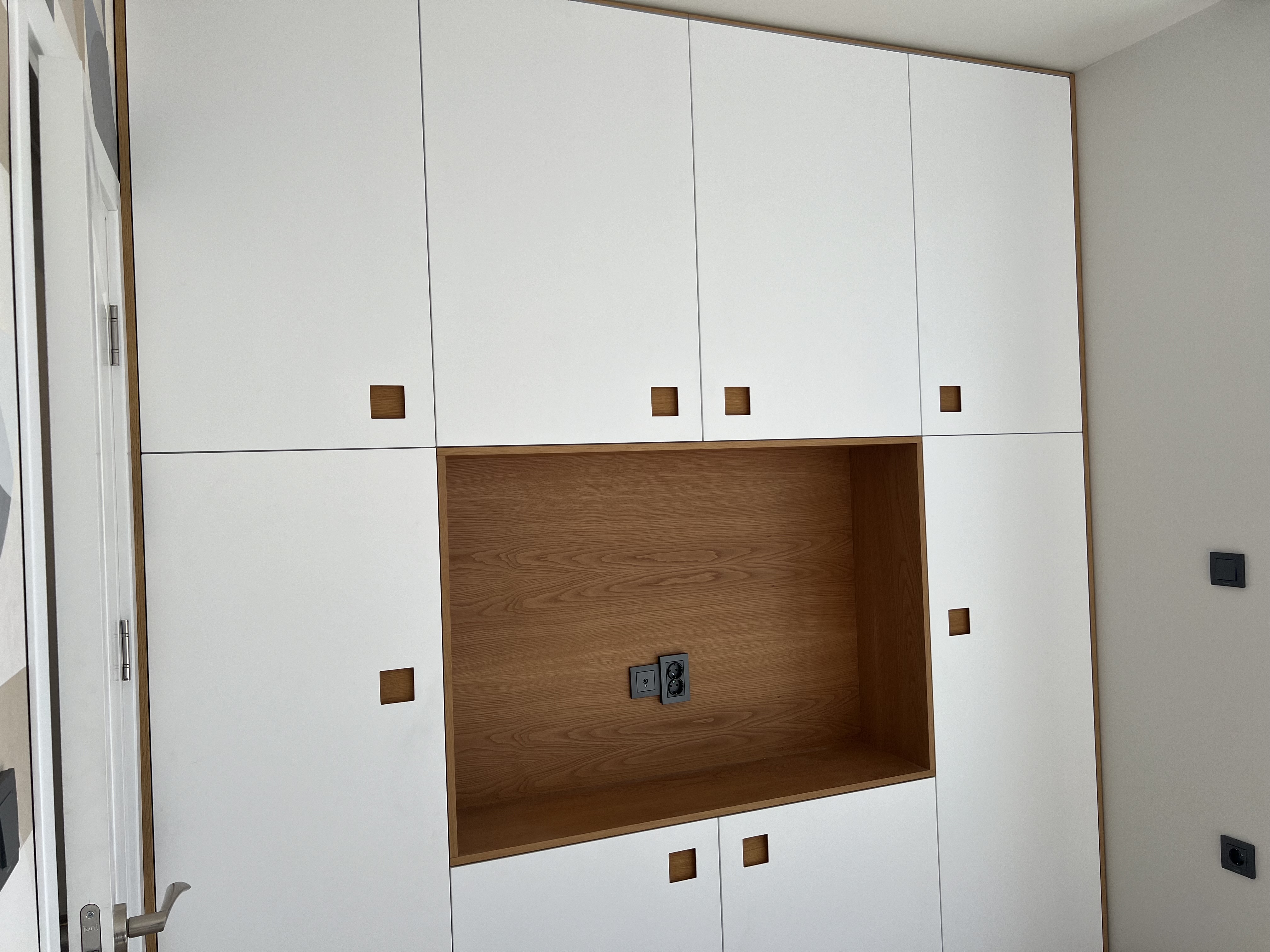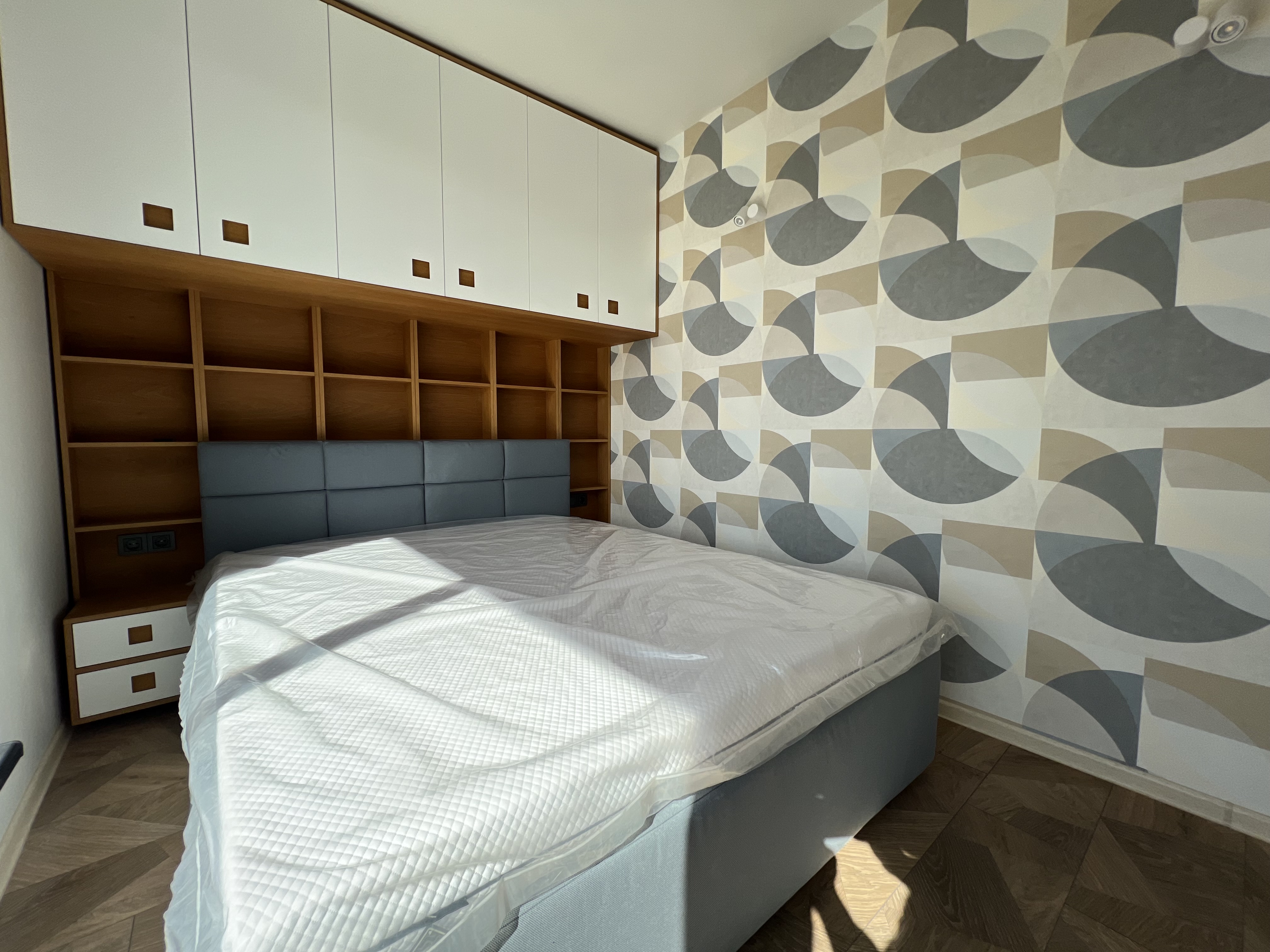Спален комплект "Берлин", изработен от бял МДФ мат, тапицирана спалня и кафяв МДФ