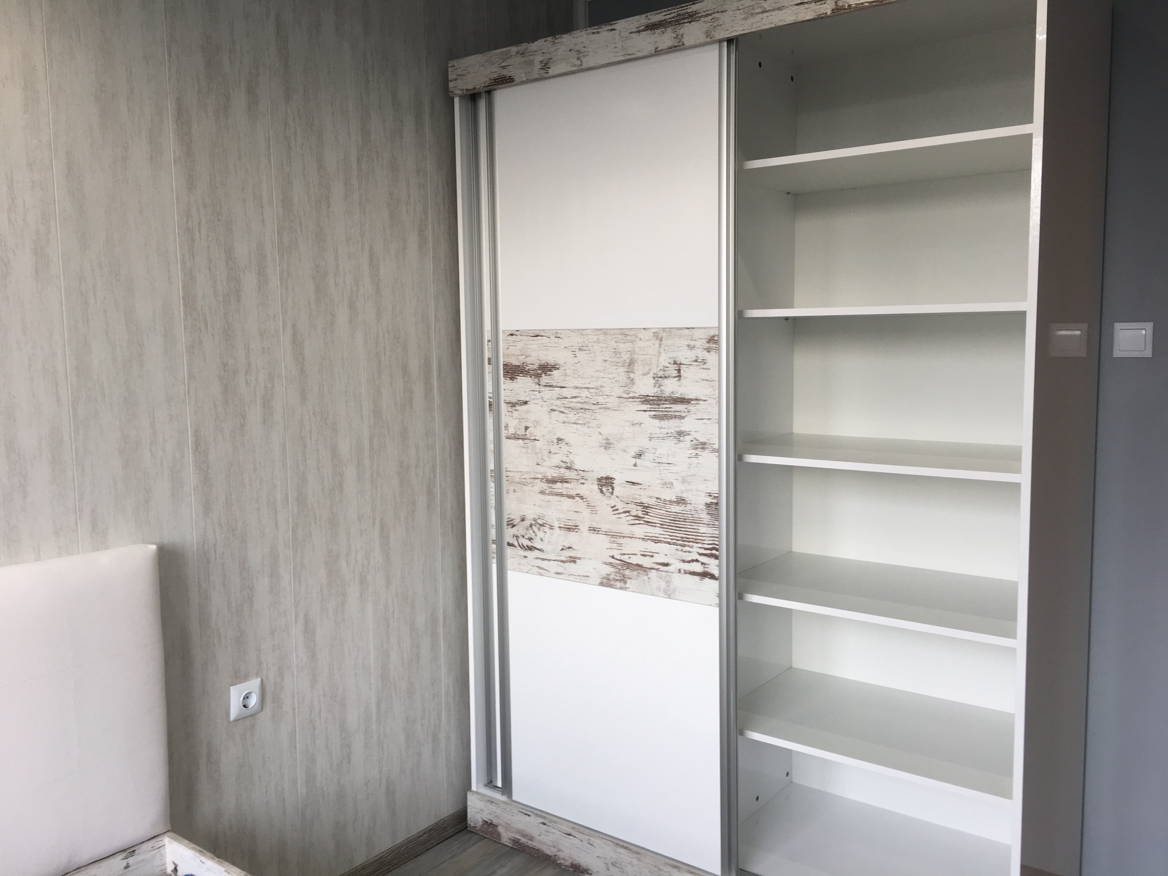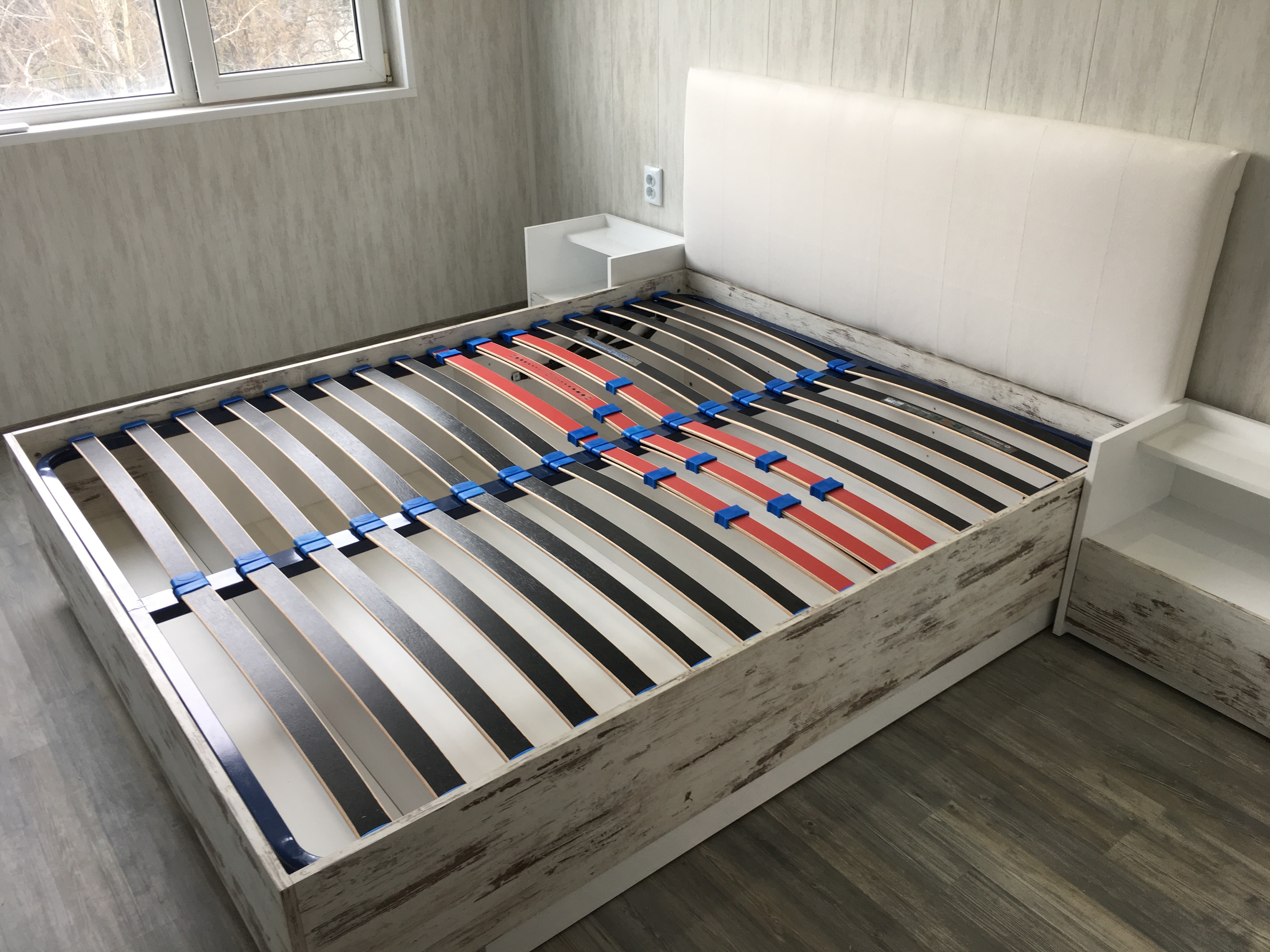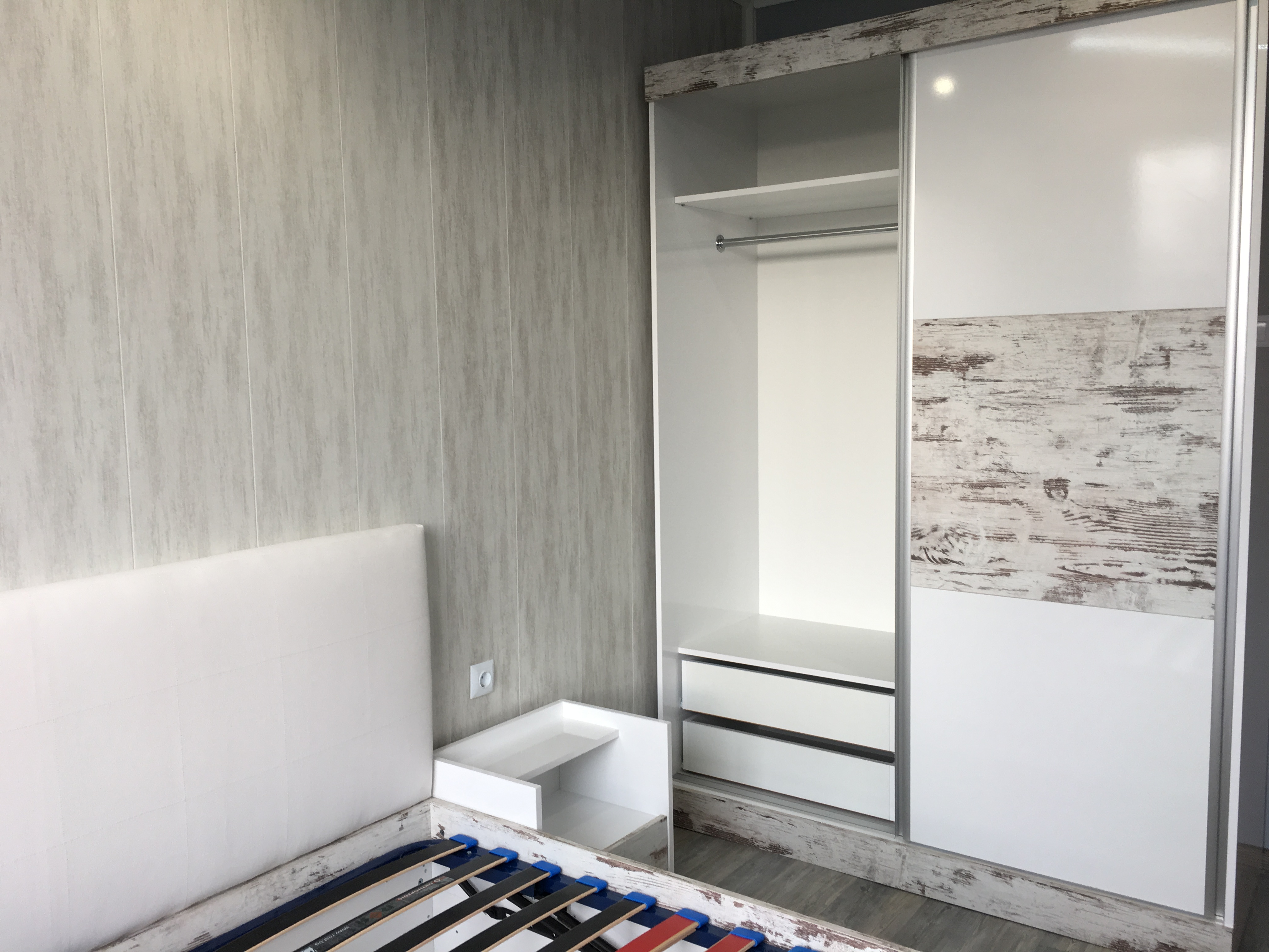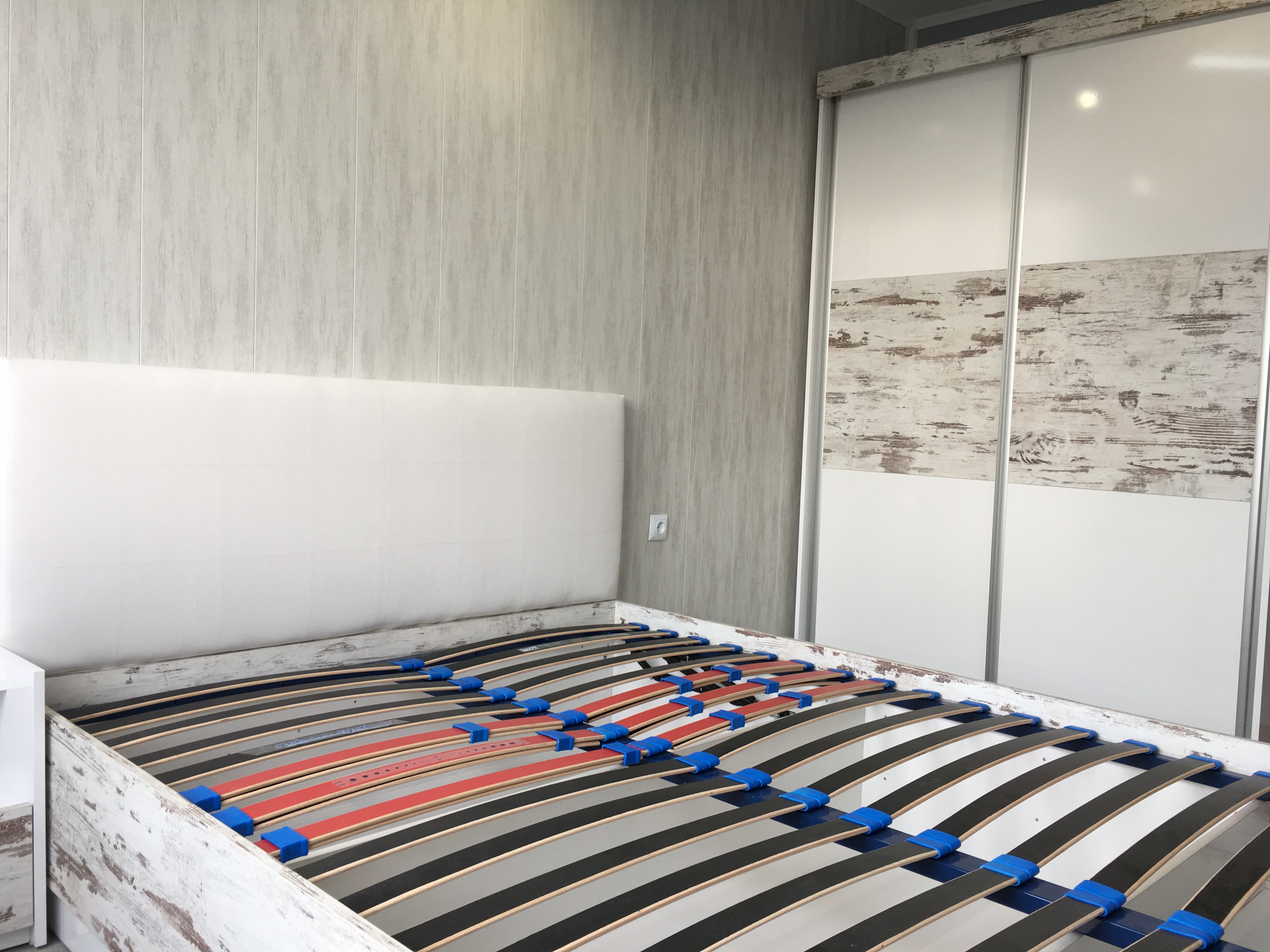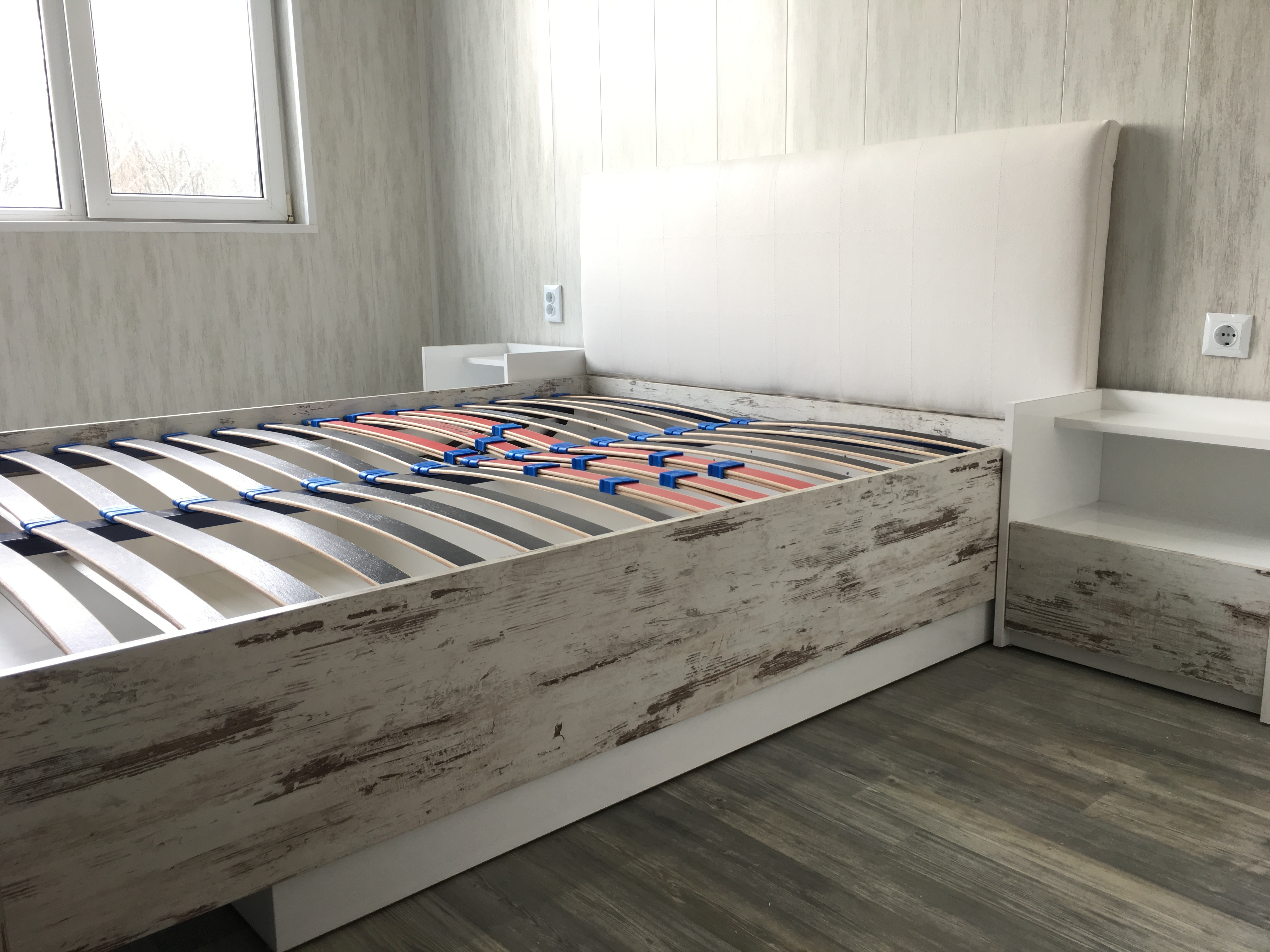 Спалня с бял гланц и старинно дърво