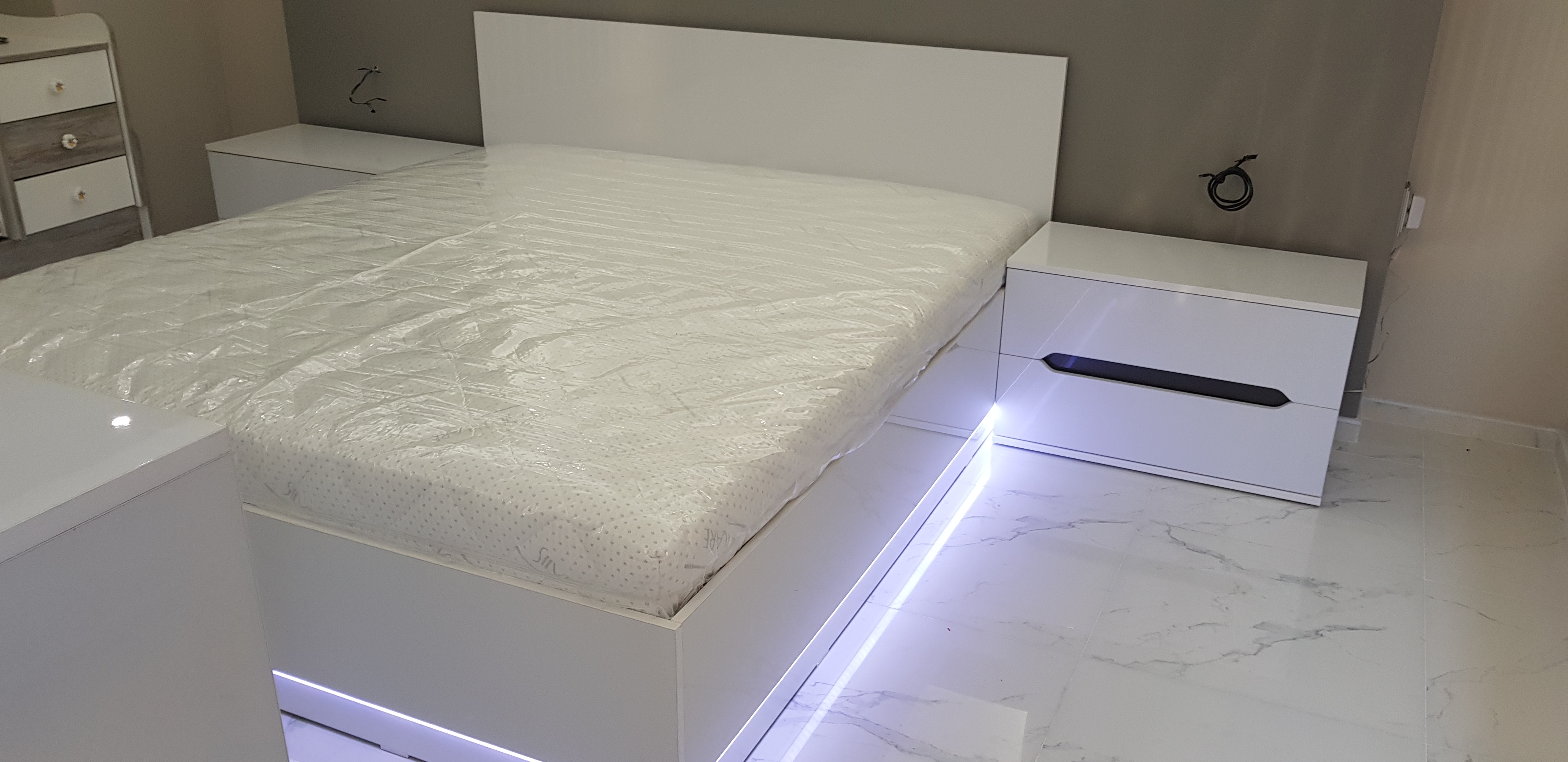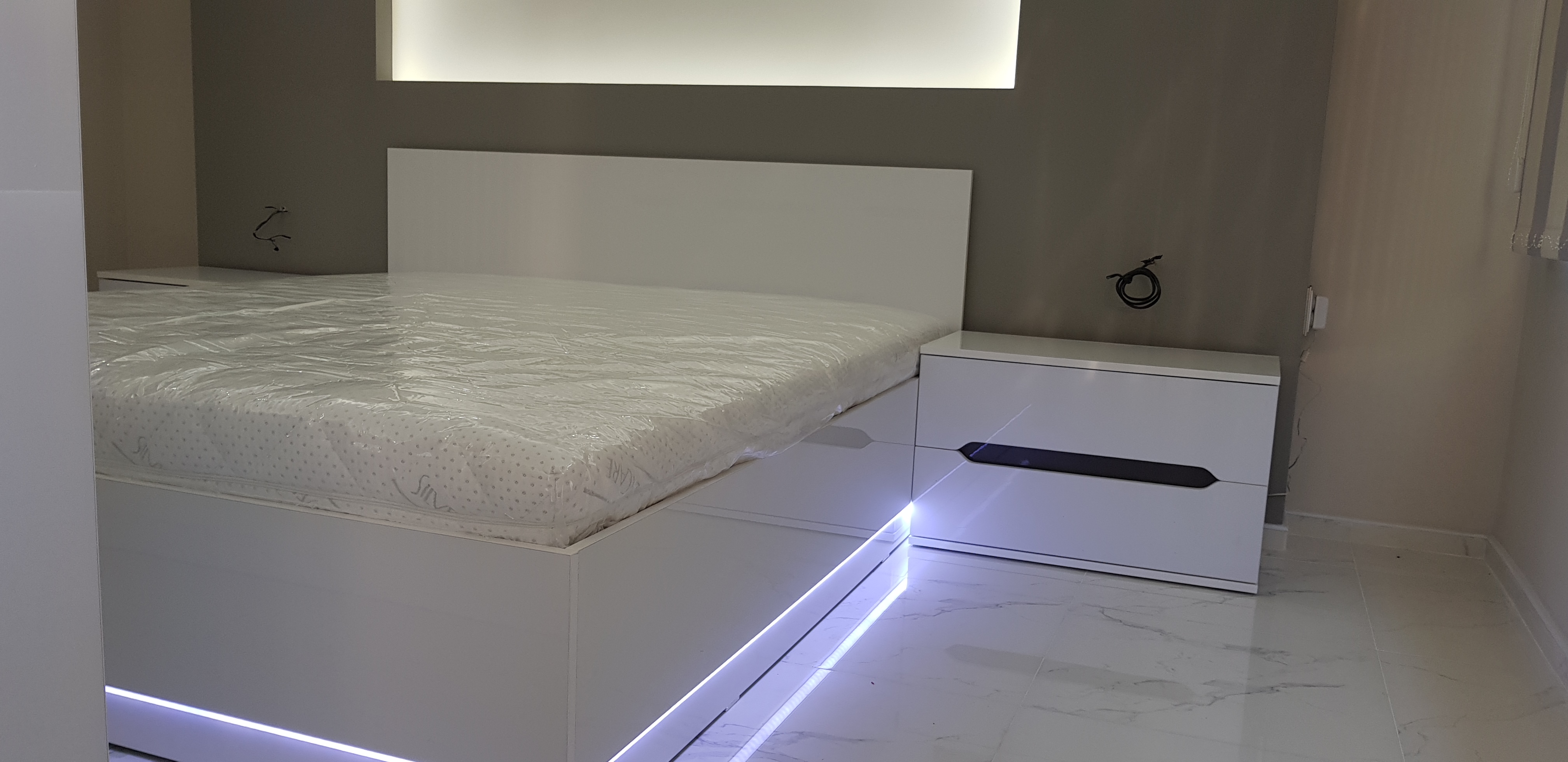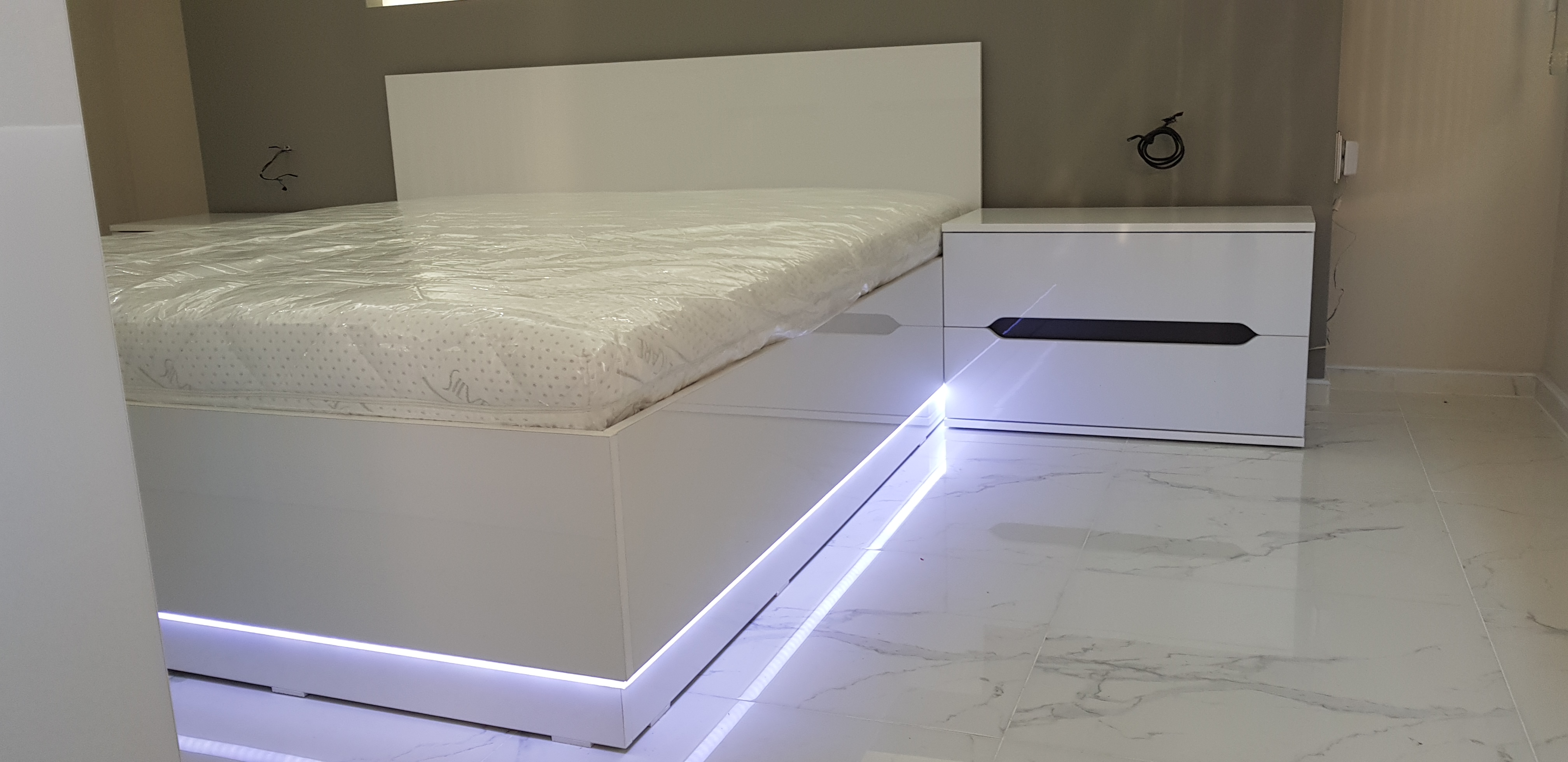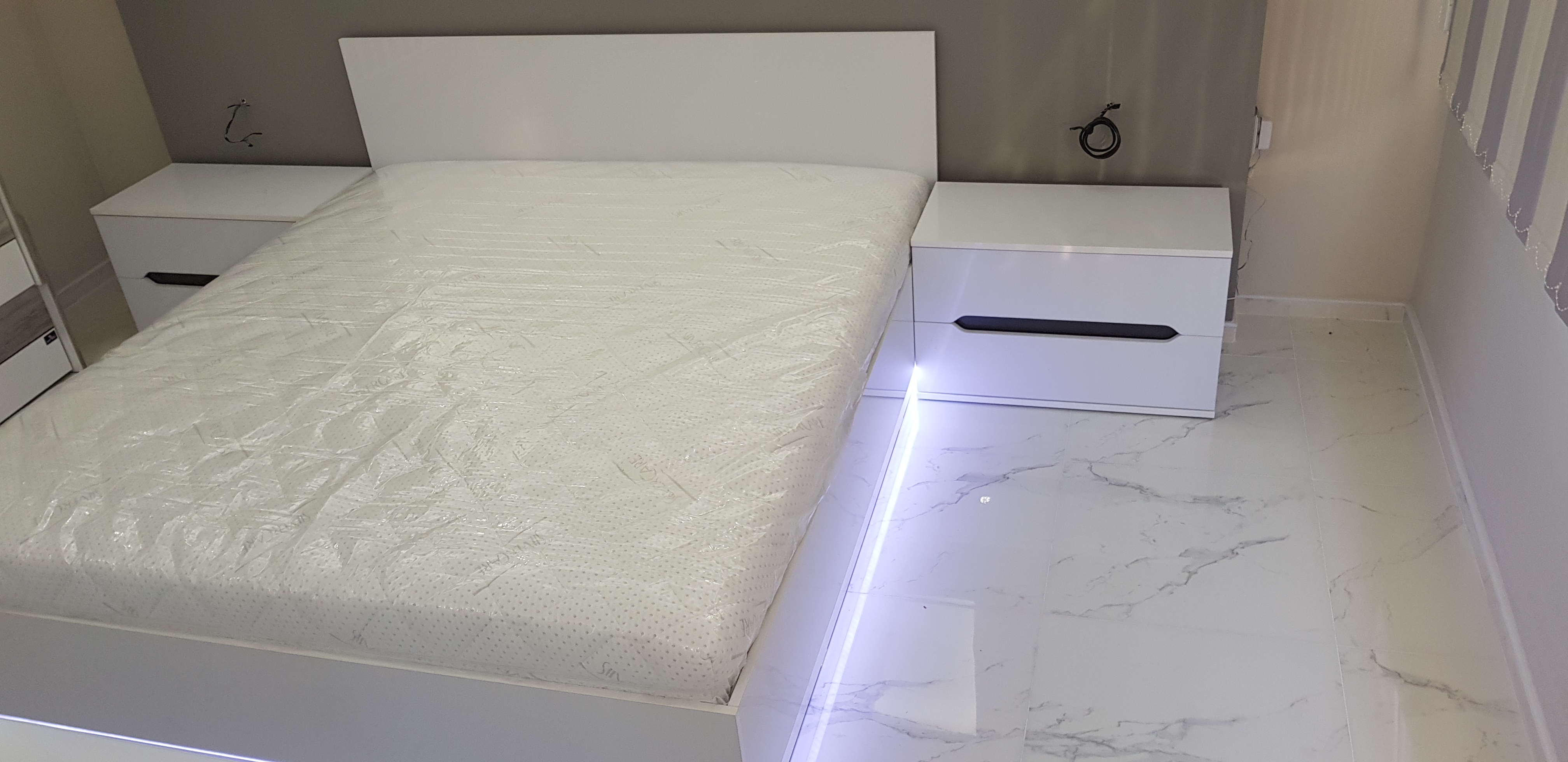 Спалня от бял гланц МДФ