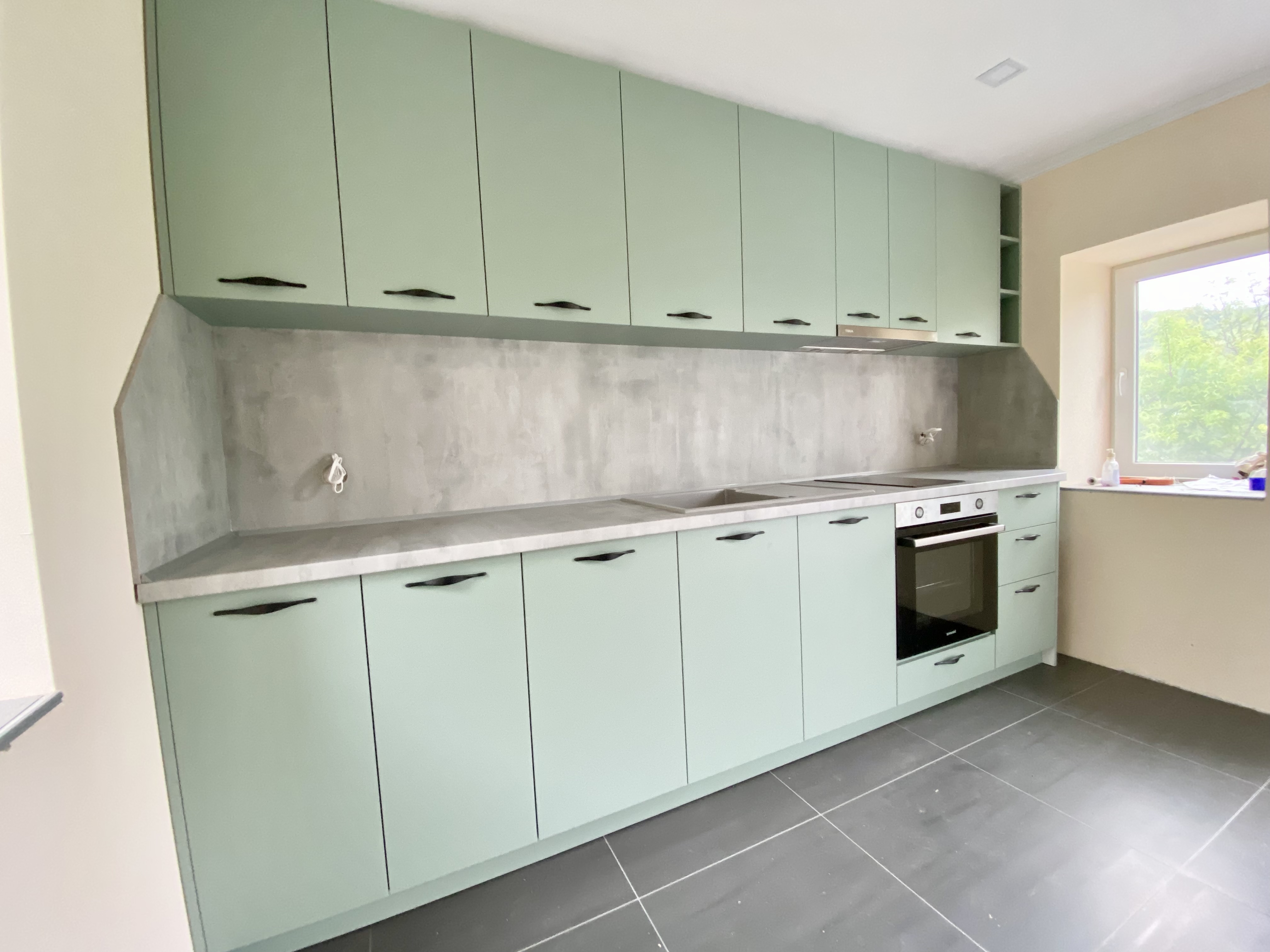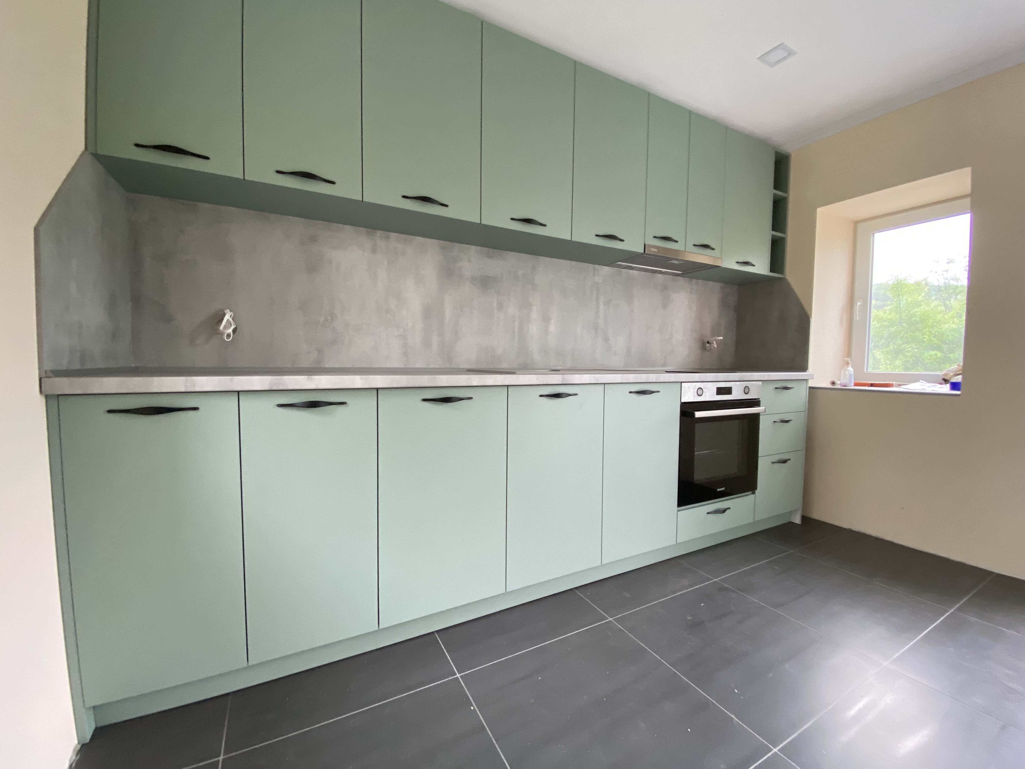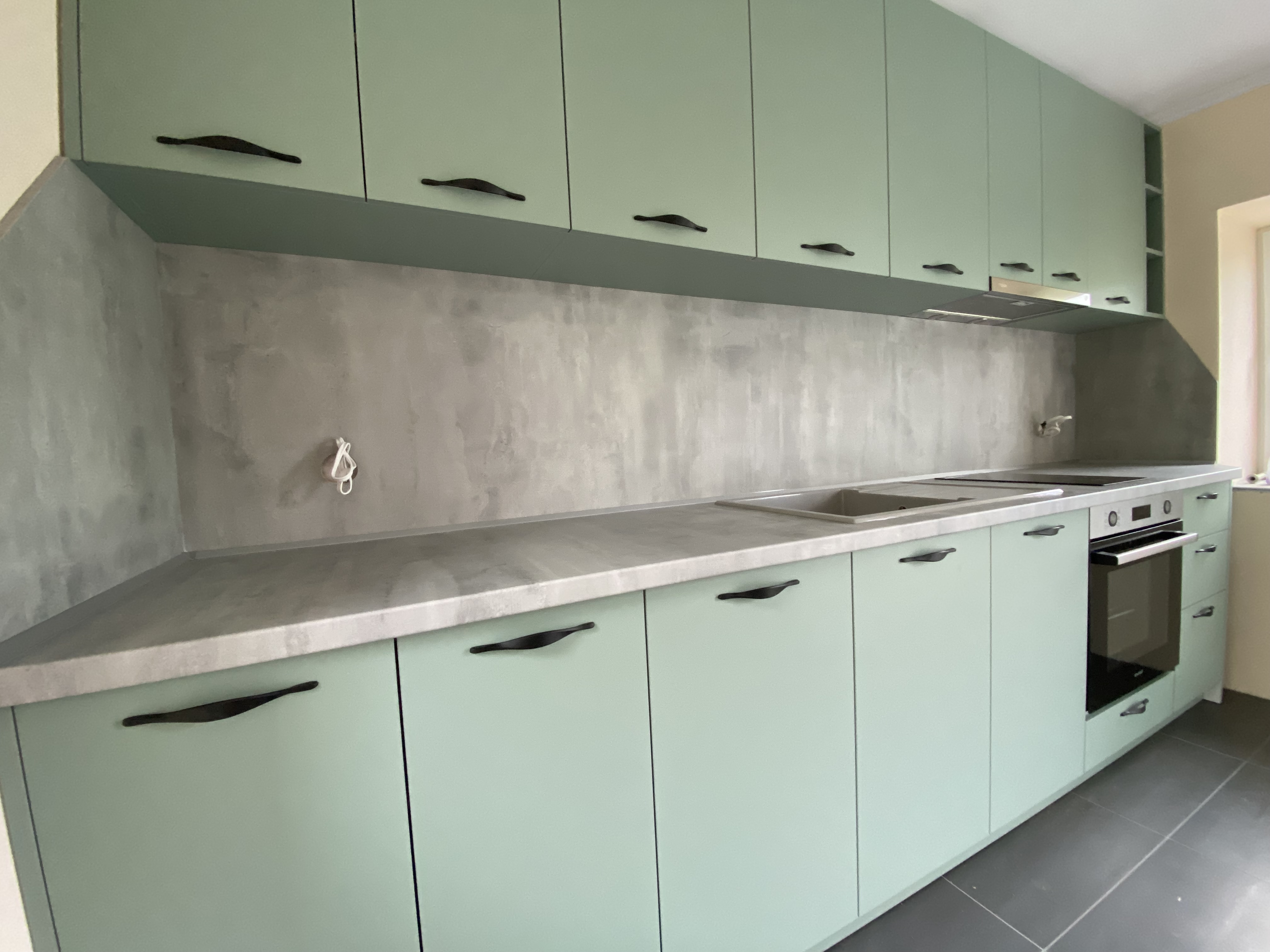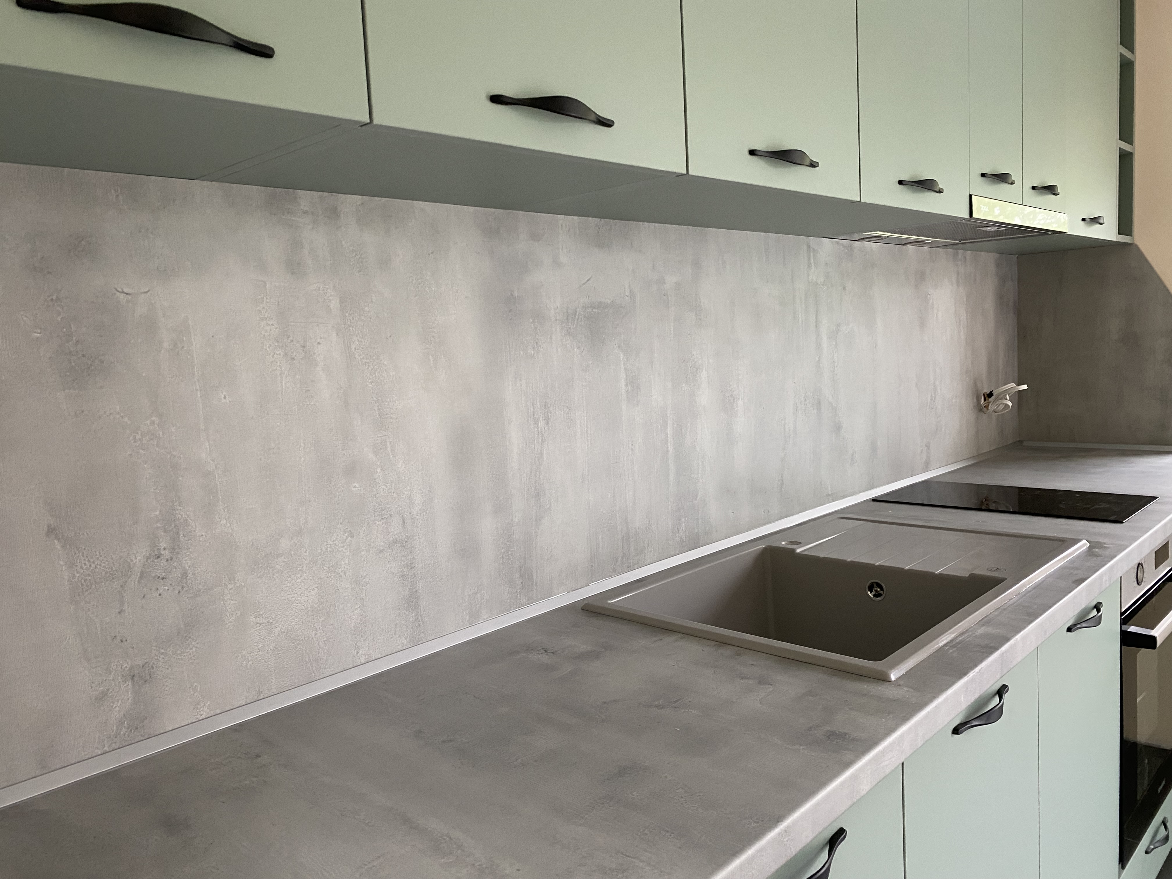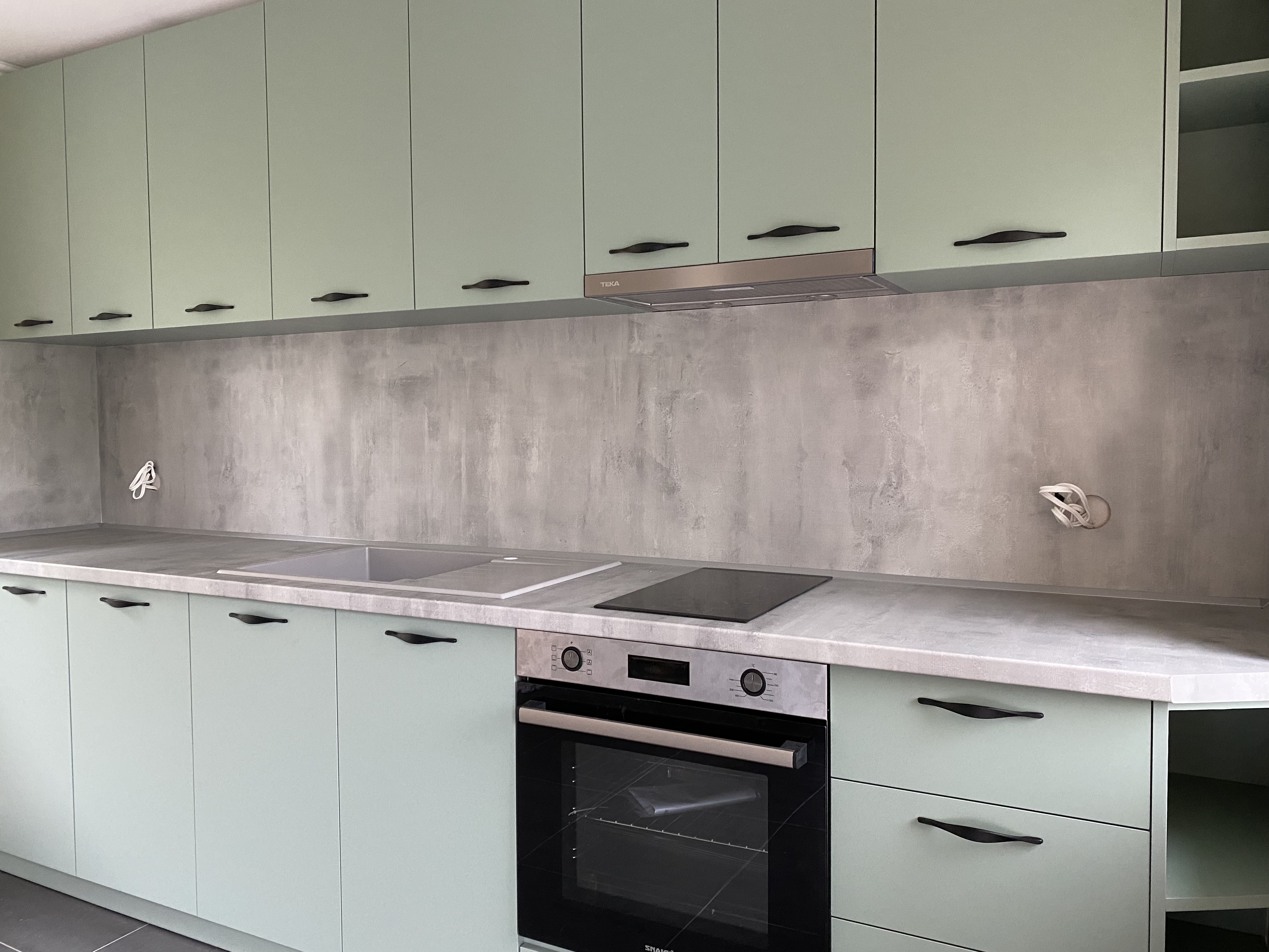 Кухня "Сиатъл". изработена от МДФ зелен пастел и сив гръб