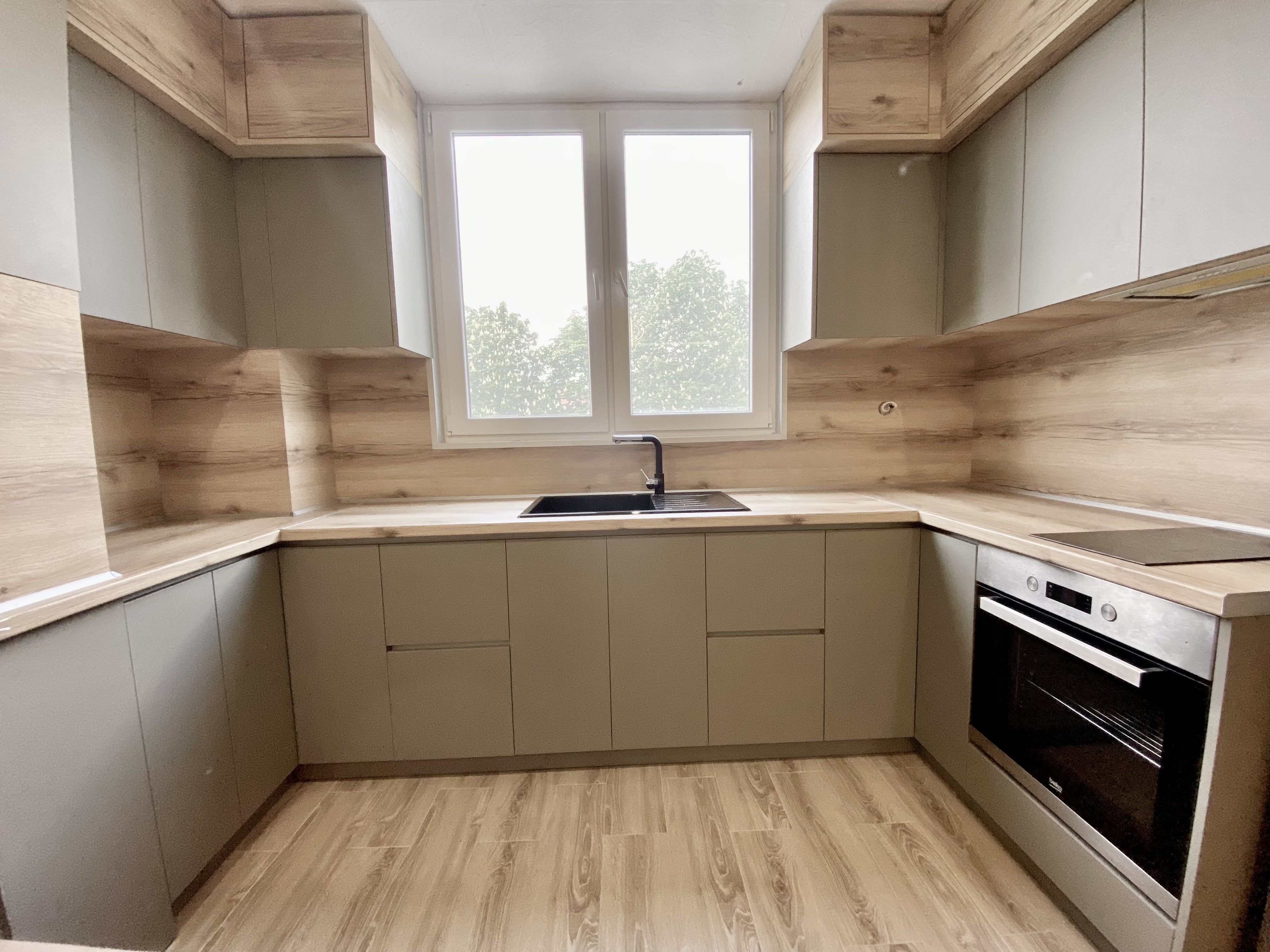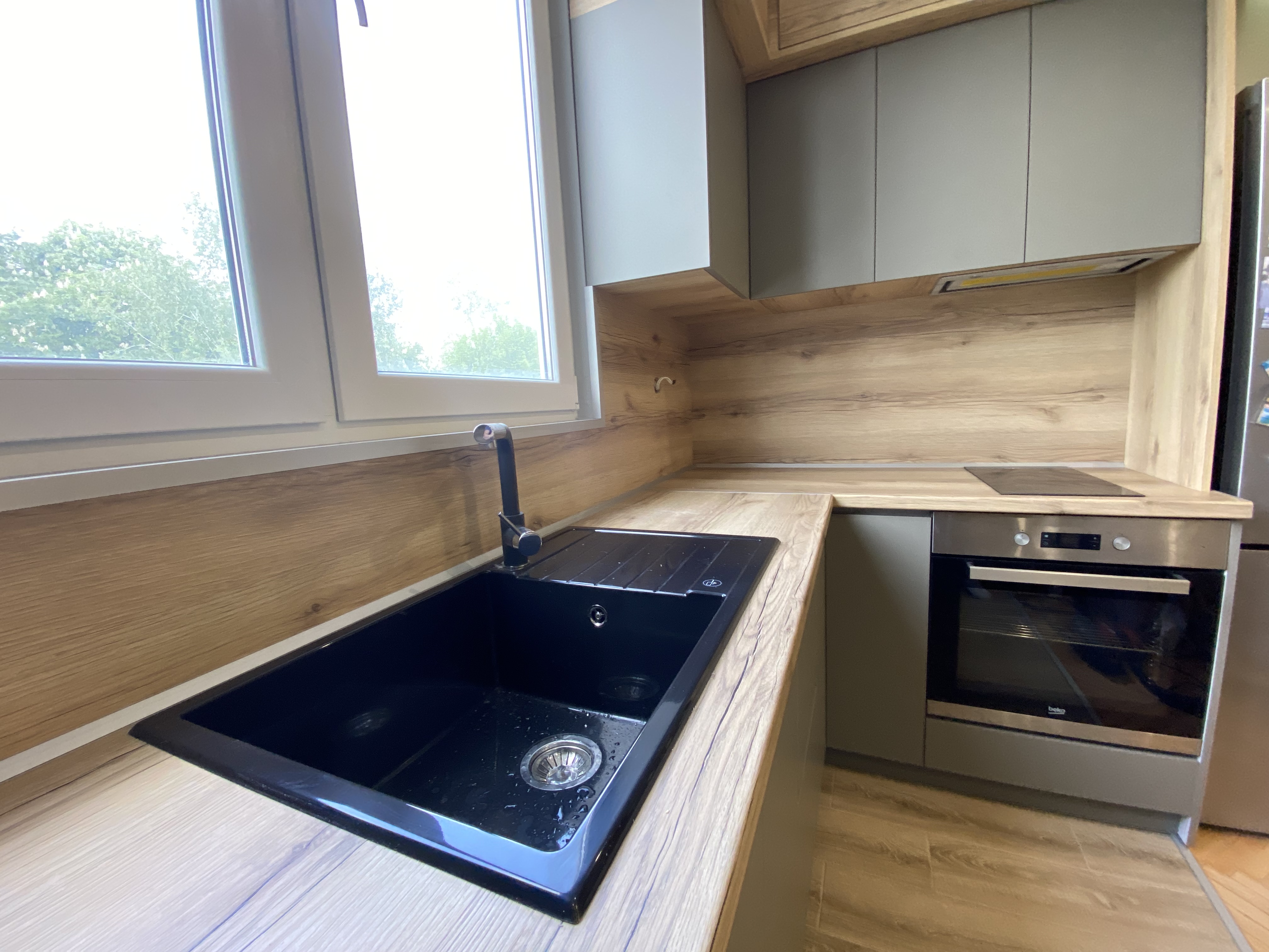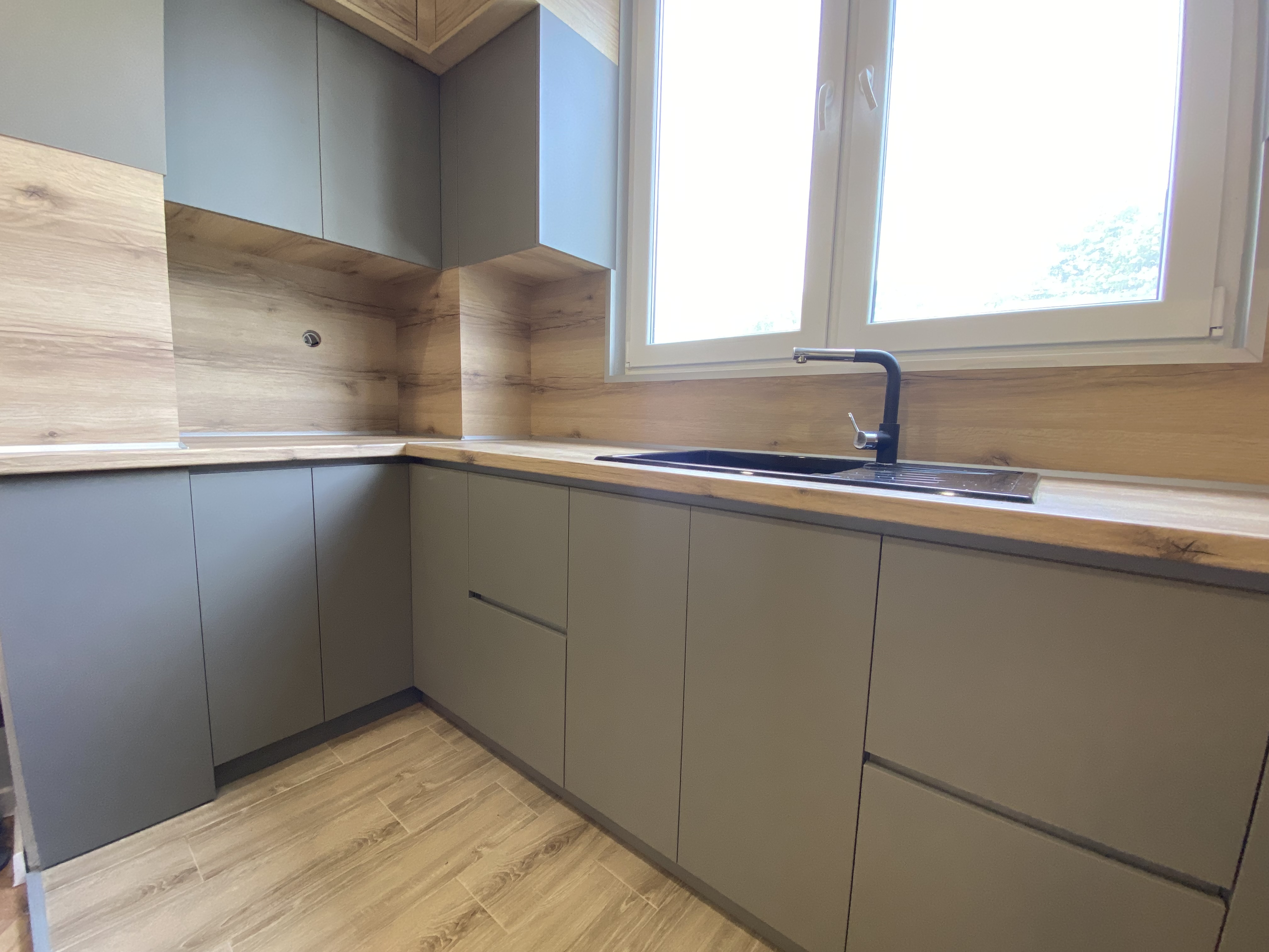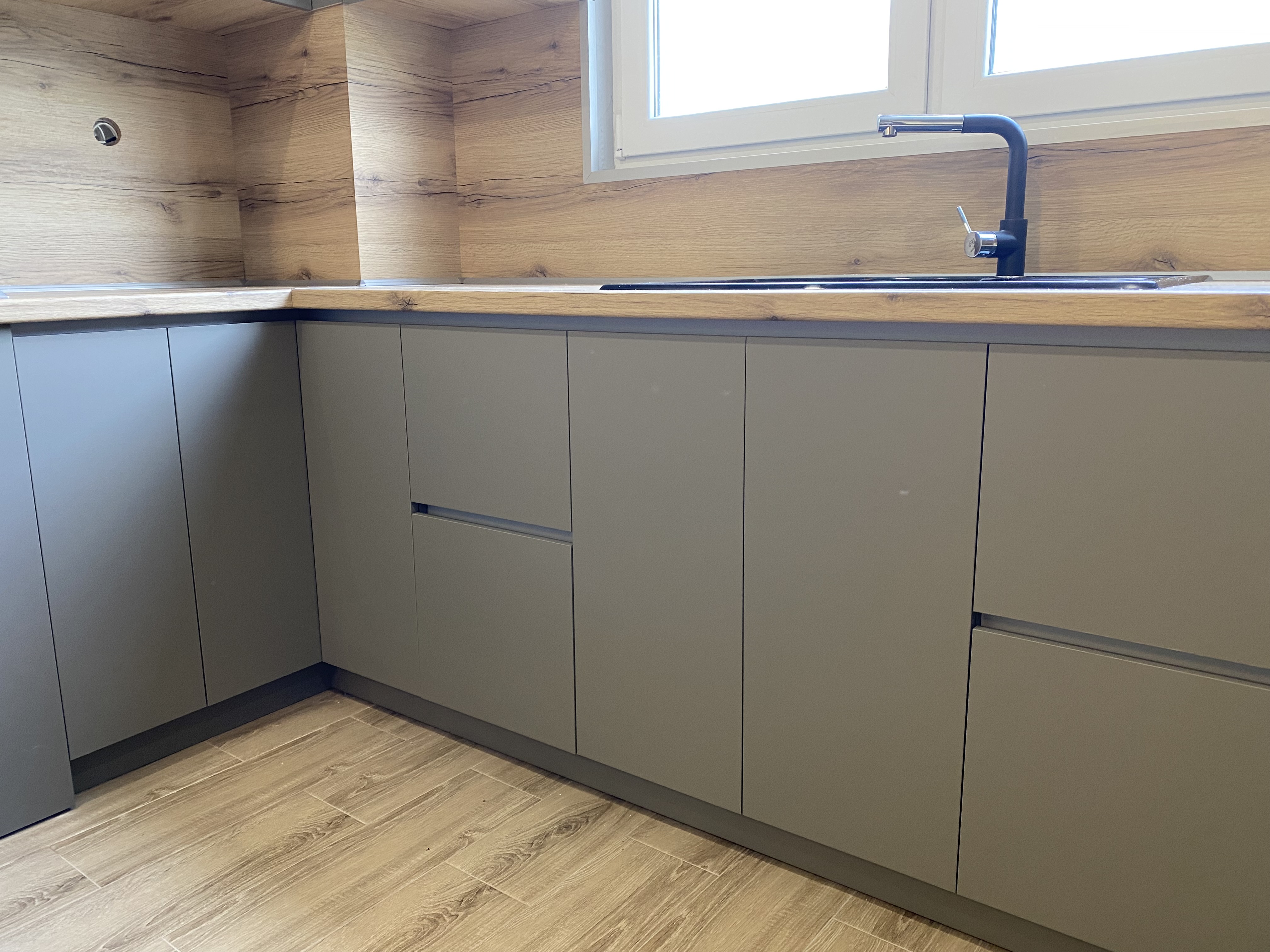 Кухня "Финикс", изработена от сив МДФ и дървестно ПДЧ