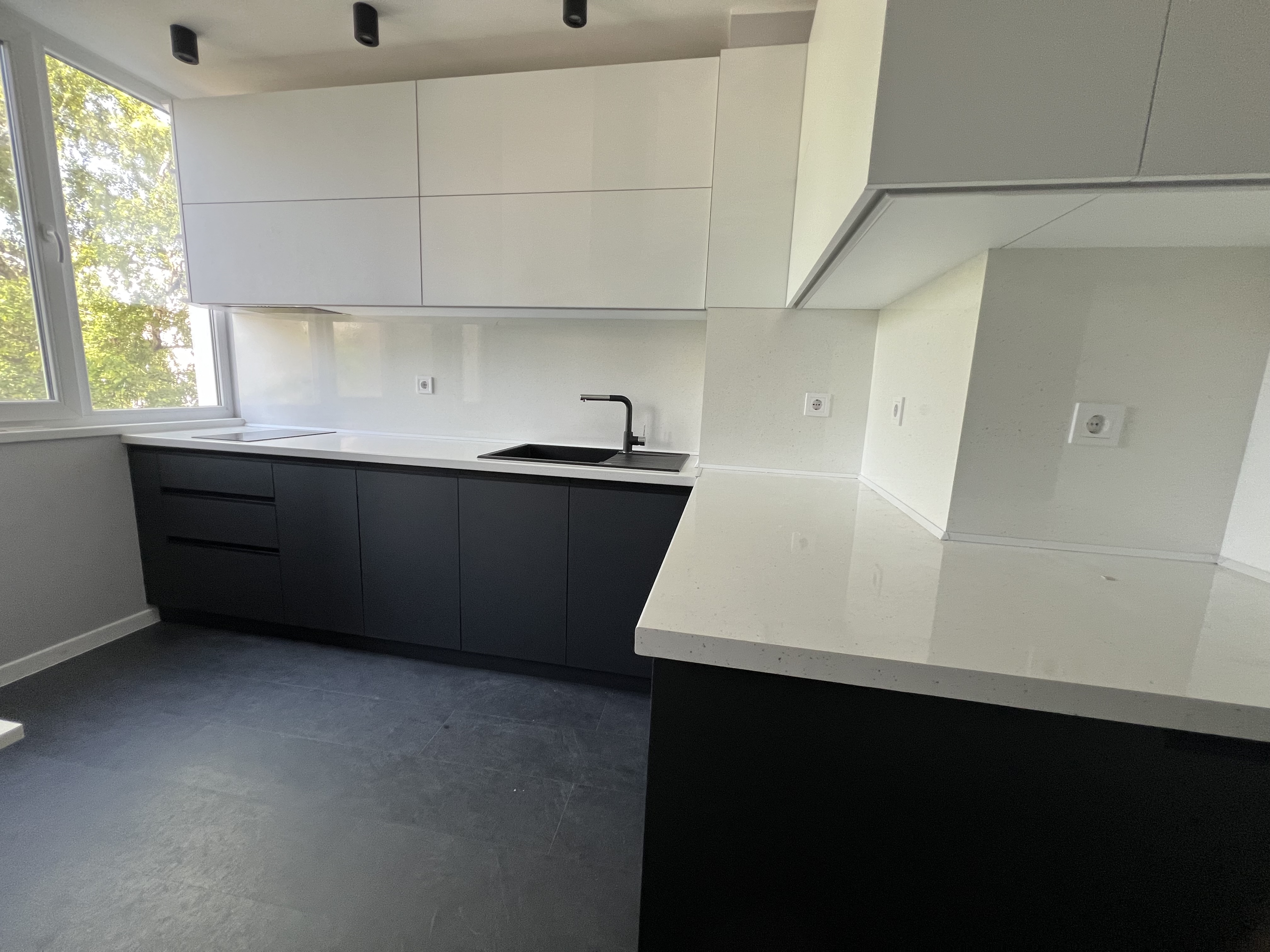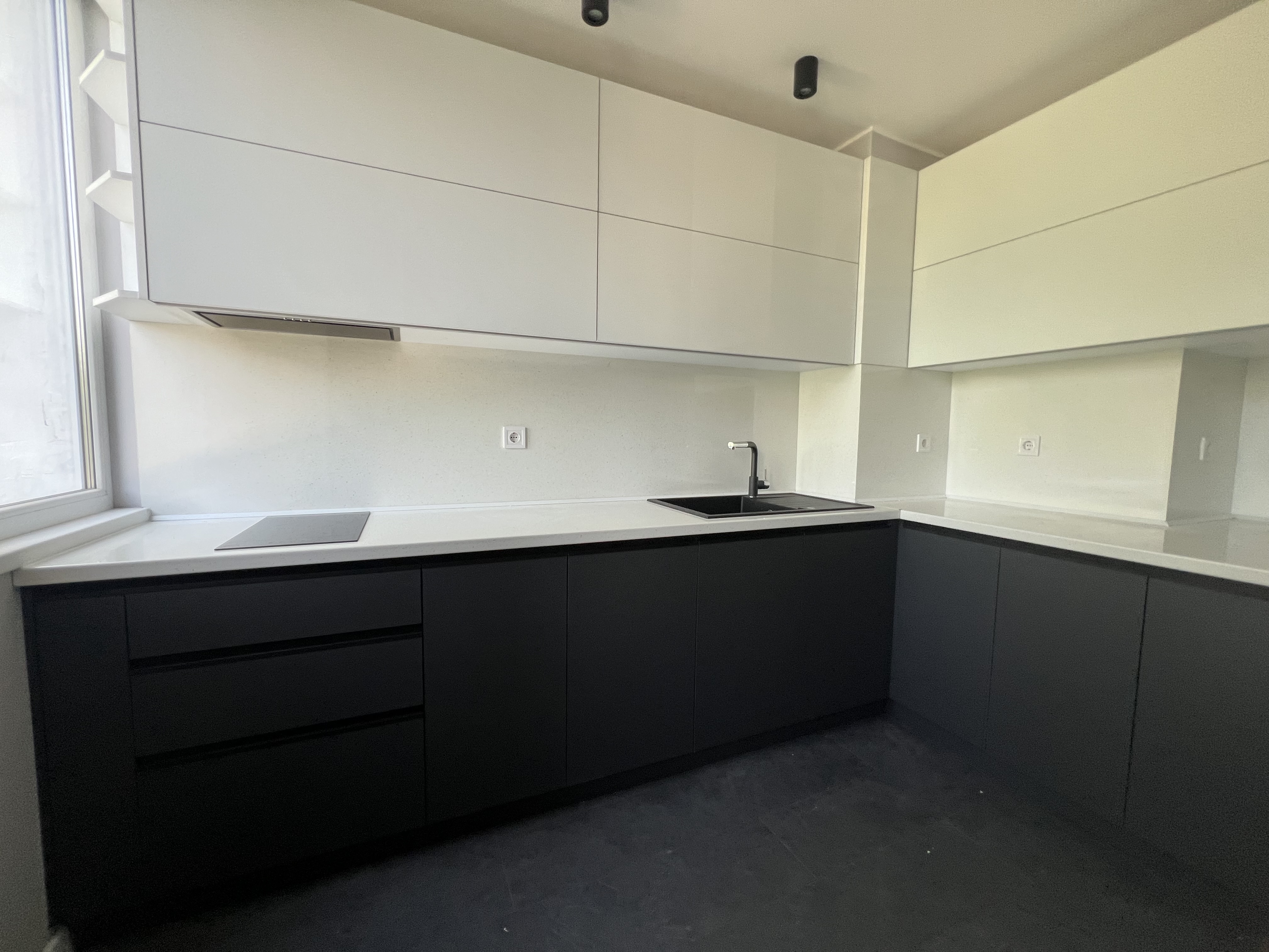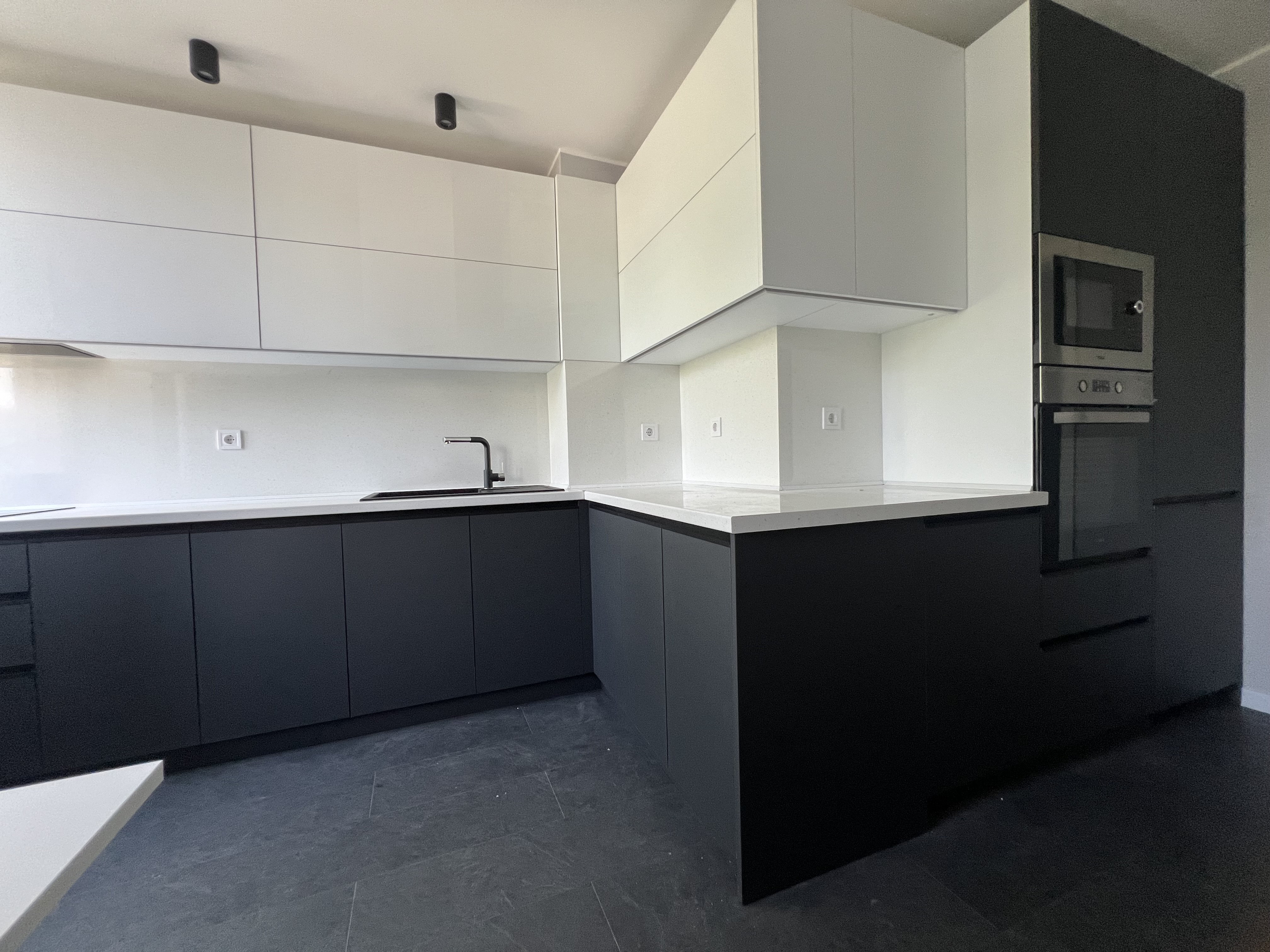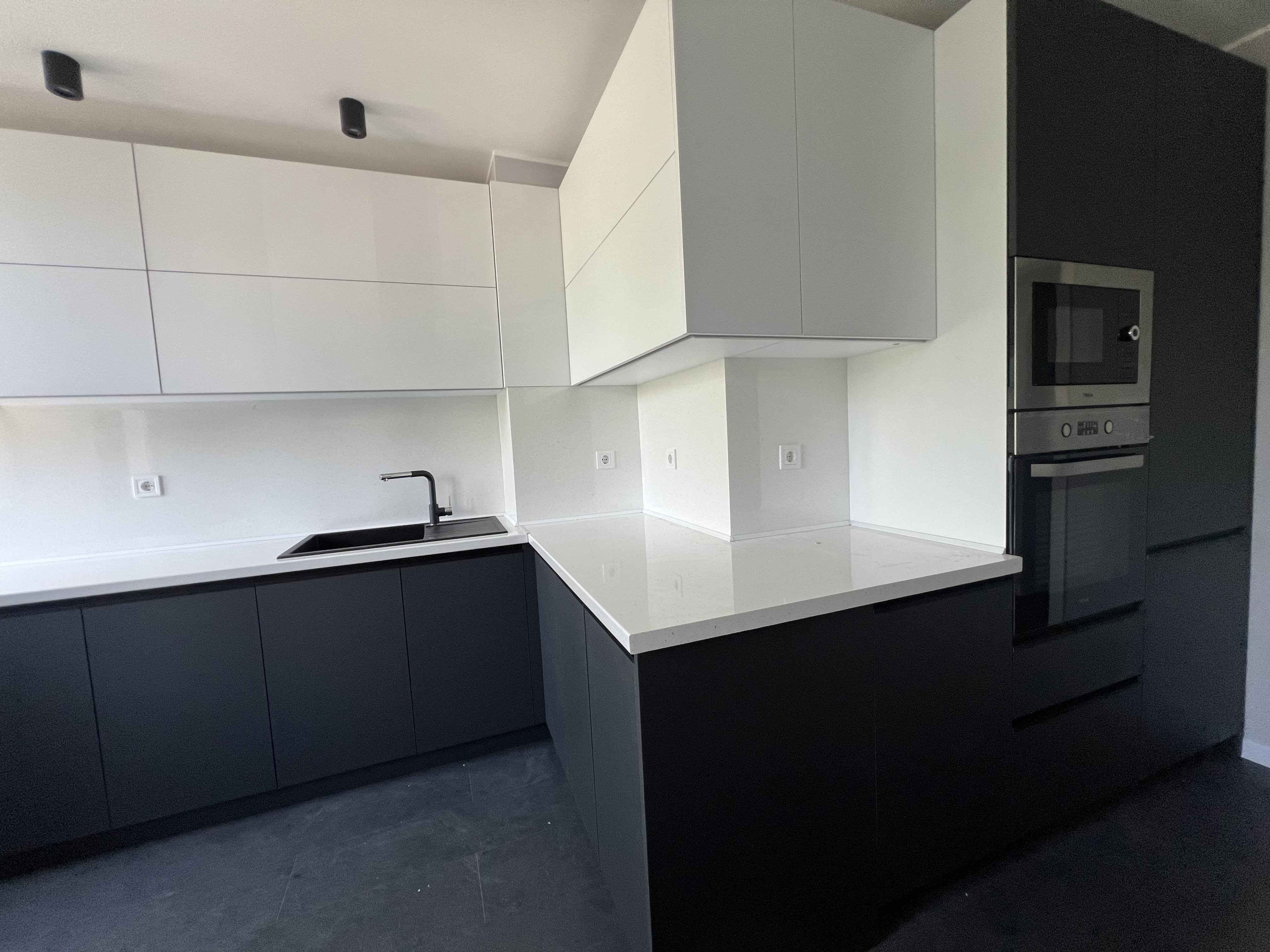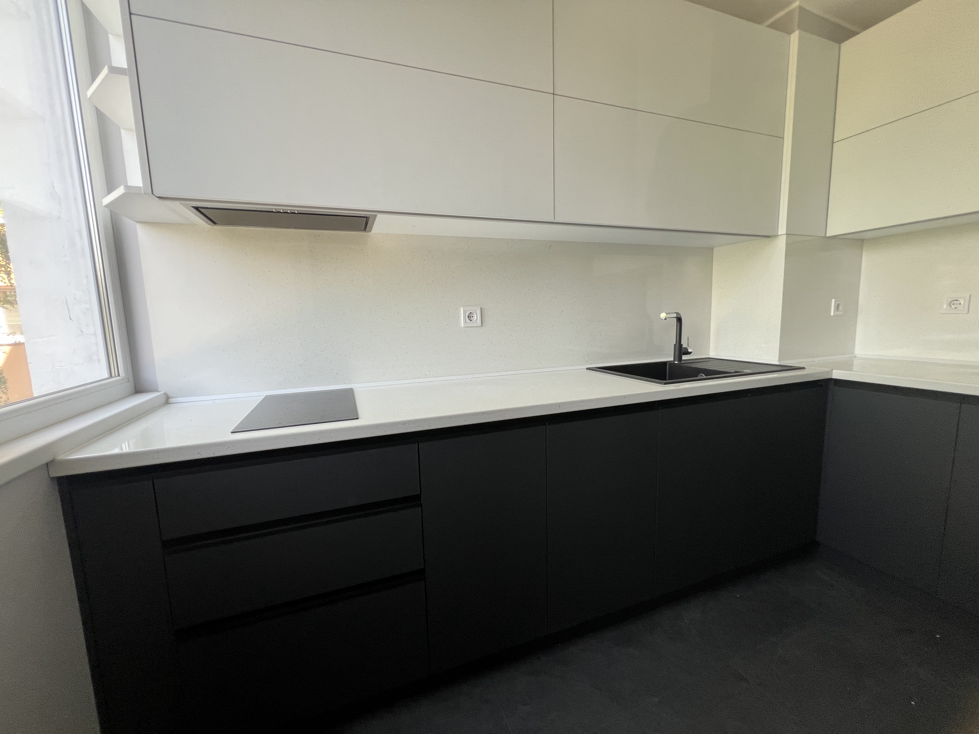 Кухня "Геноа", изработена от МДФ тъмен графит мат и бял МДФ мат