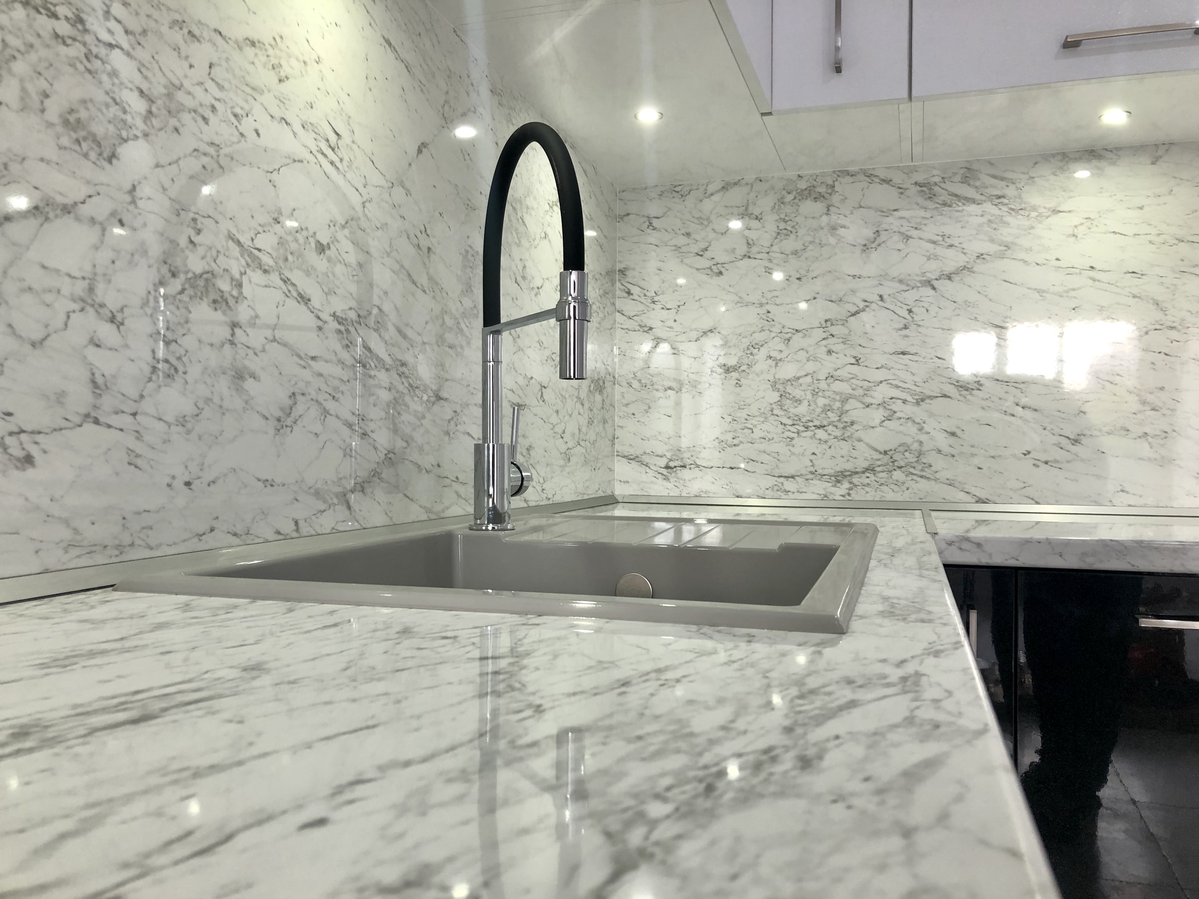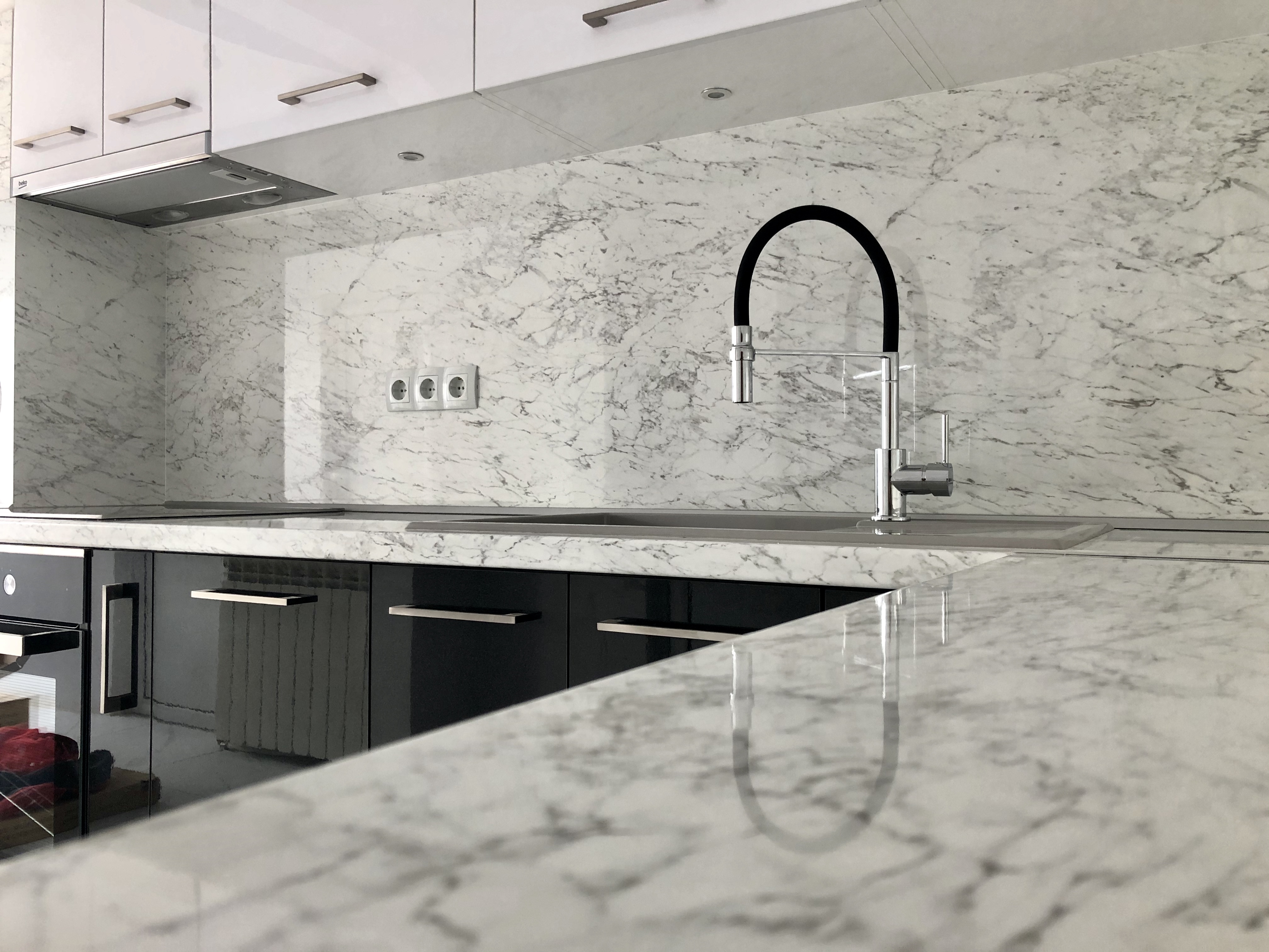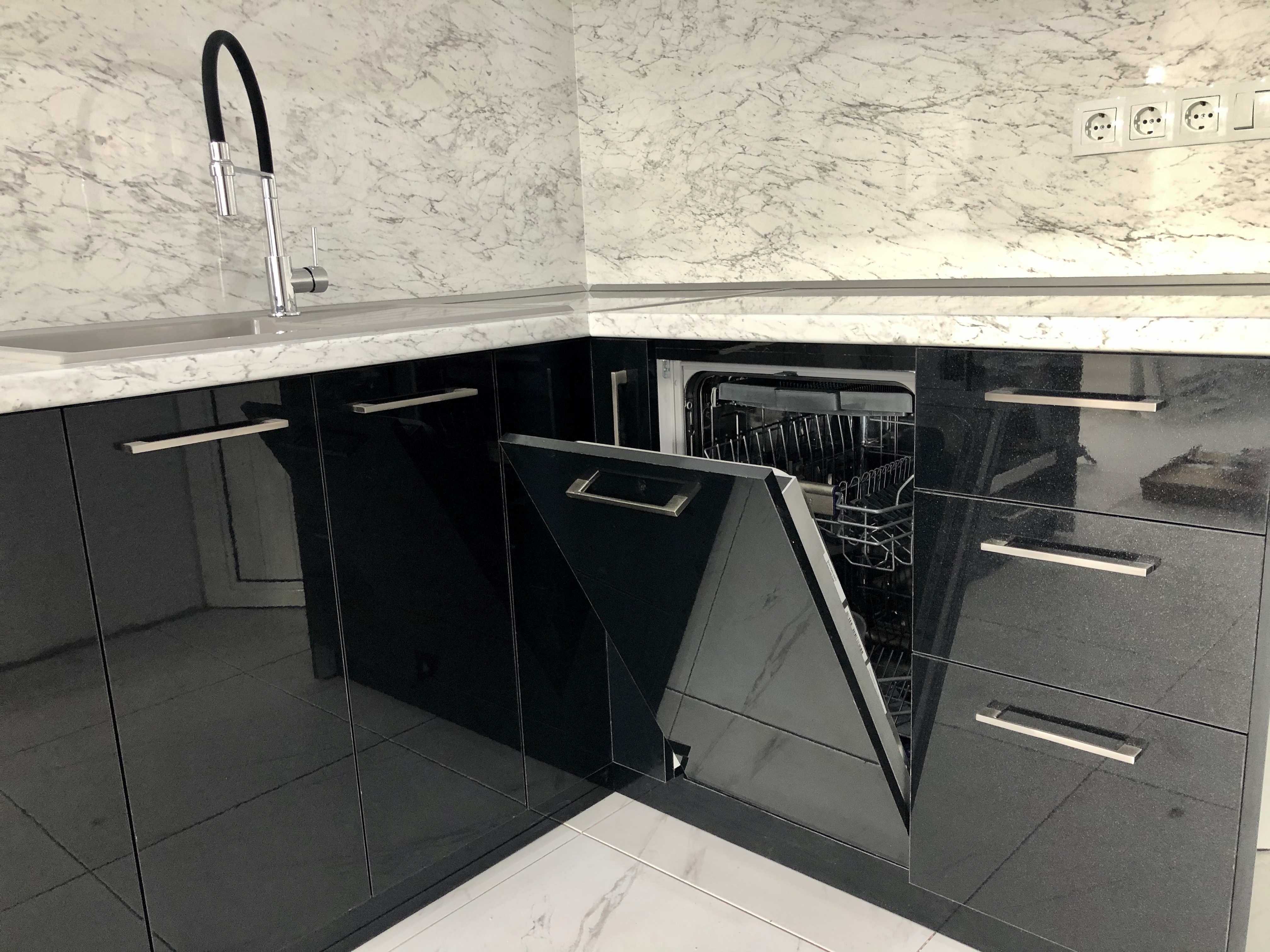 Кухня от МДФ с комбинация от перла бял и черен гланц