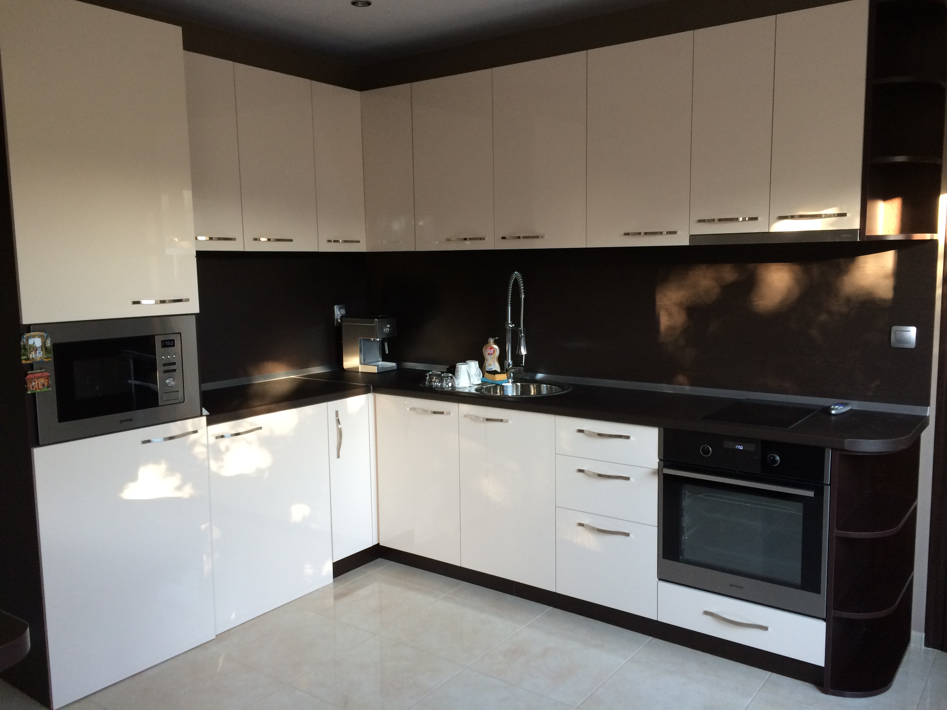 Кухня в комбинация със венге и крем-гланц