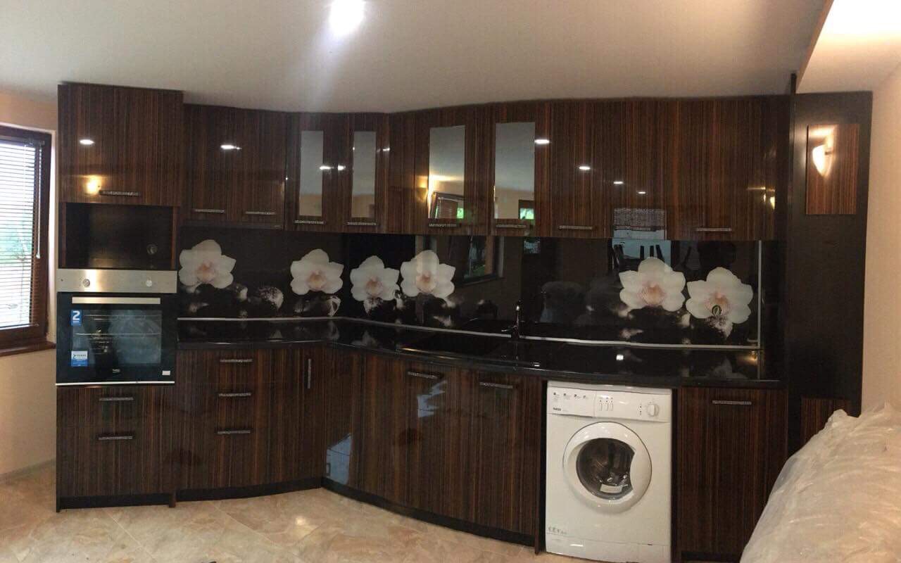 Кухня черен гланц и кафяв MDF