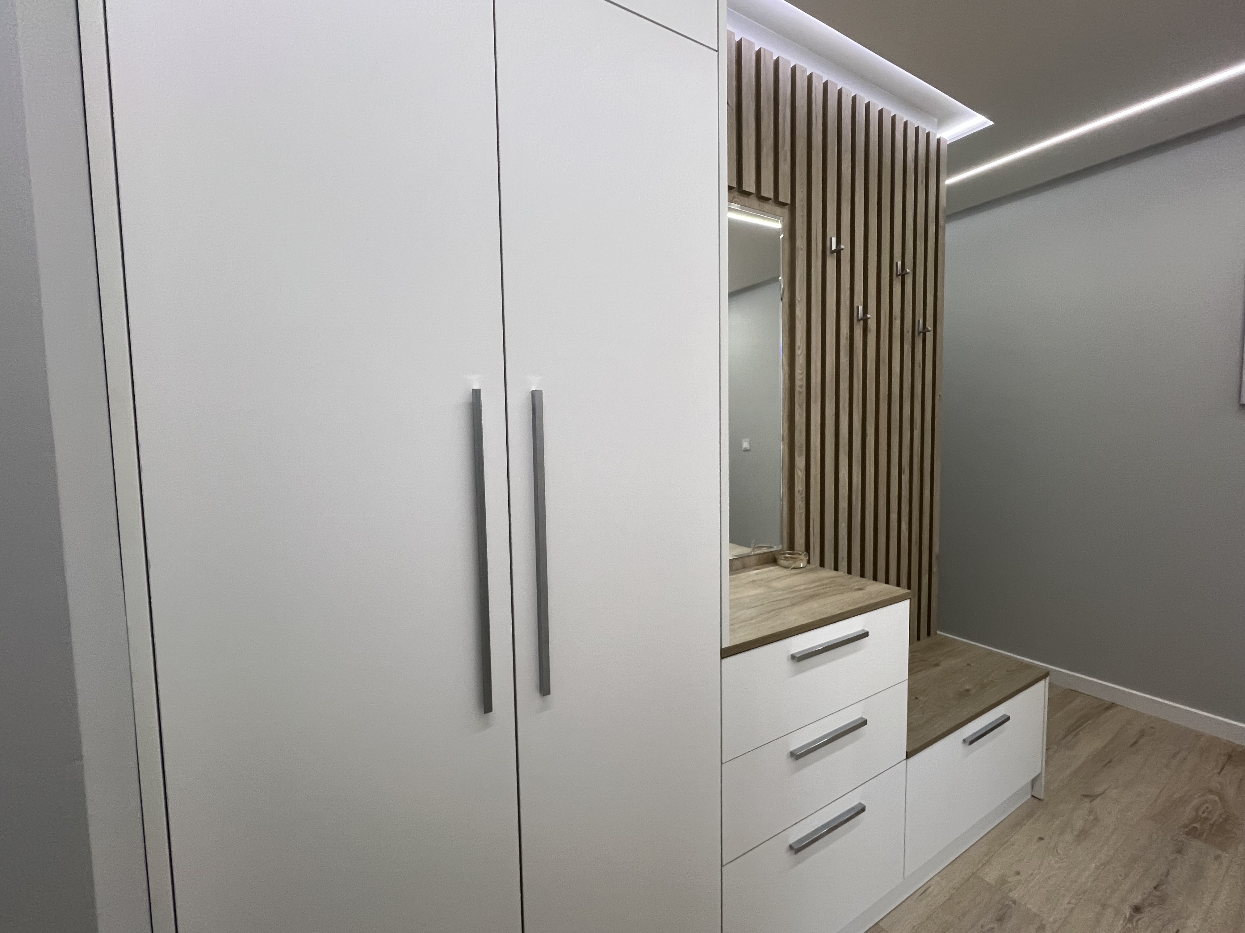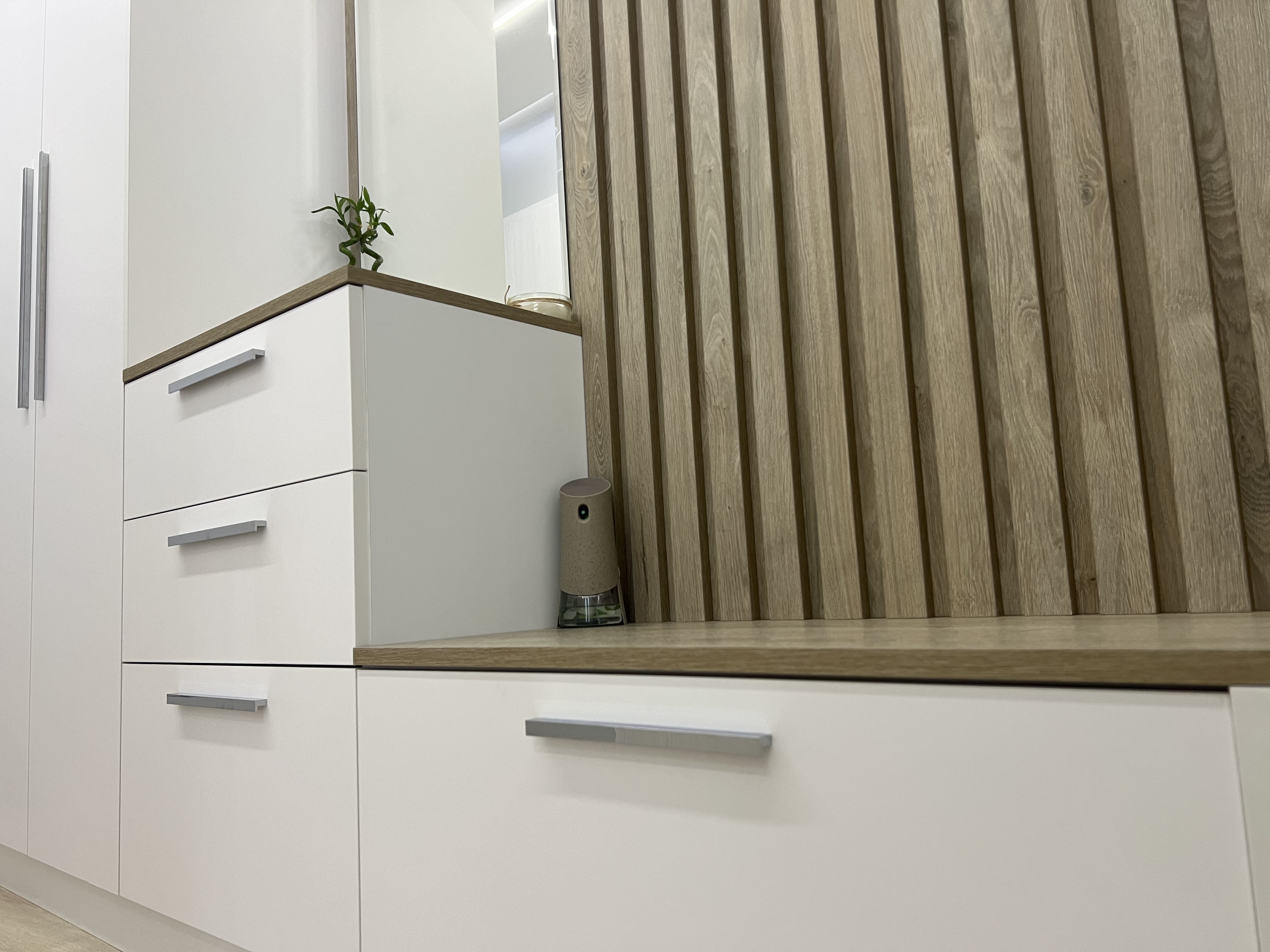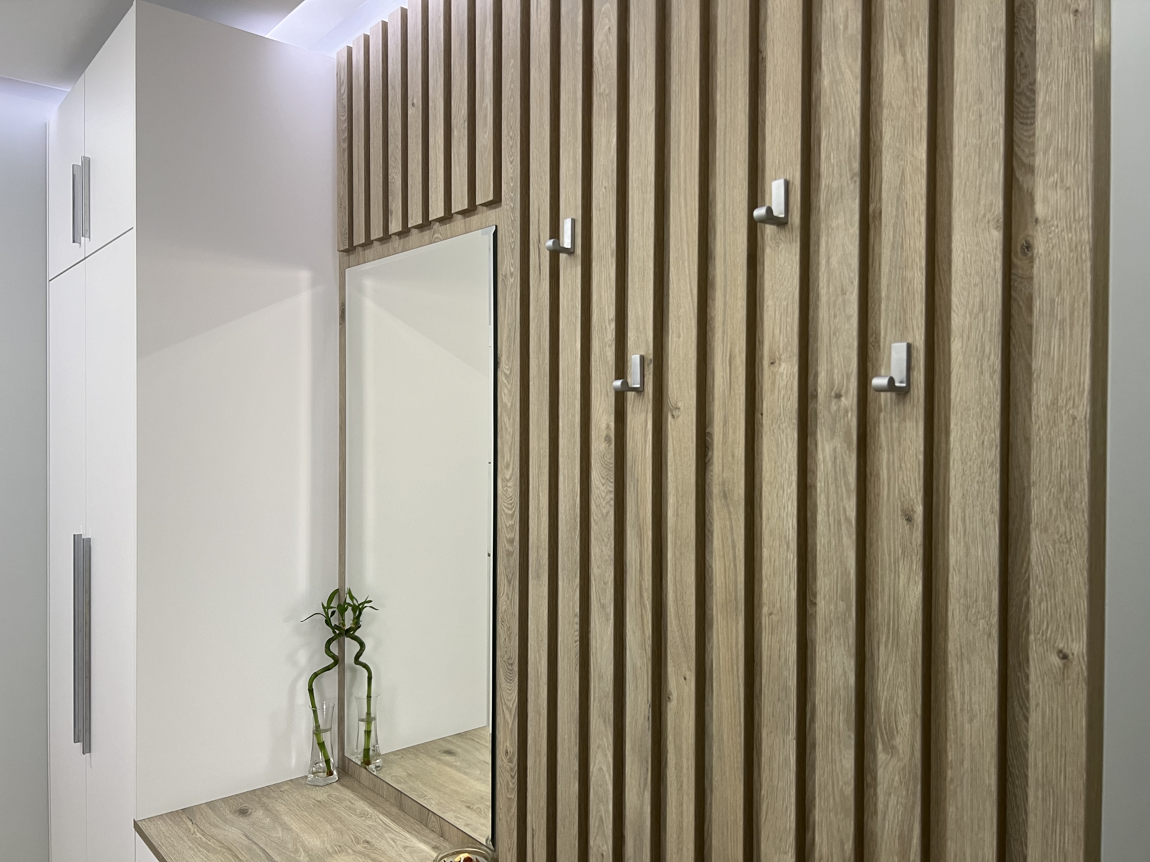 Портманто "Лион", изработено от МДФ бял мат и ПДЧ дървесен декор
