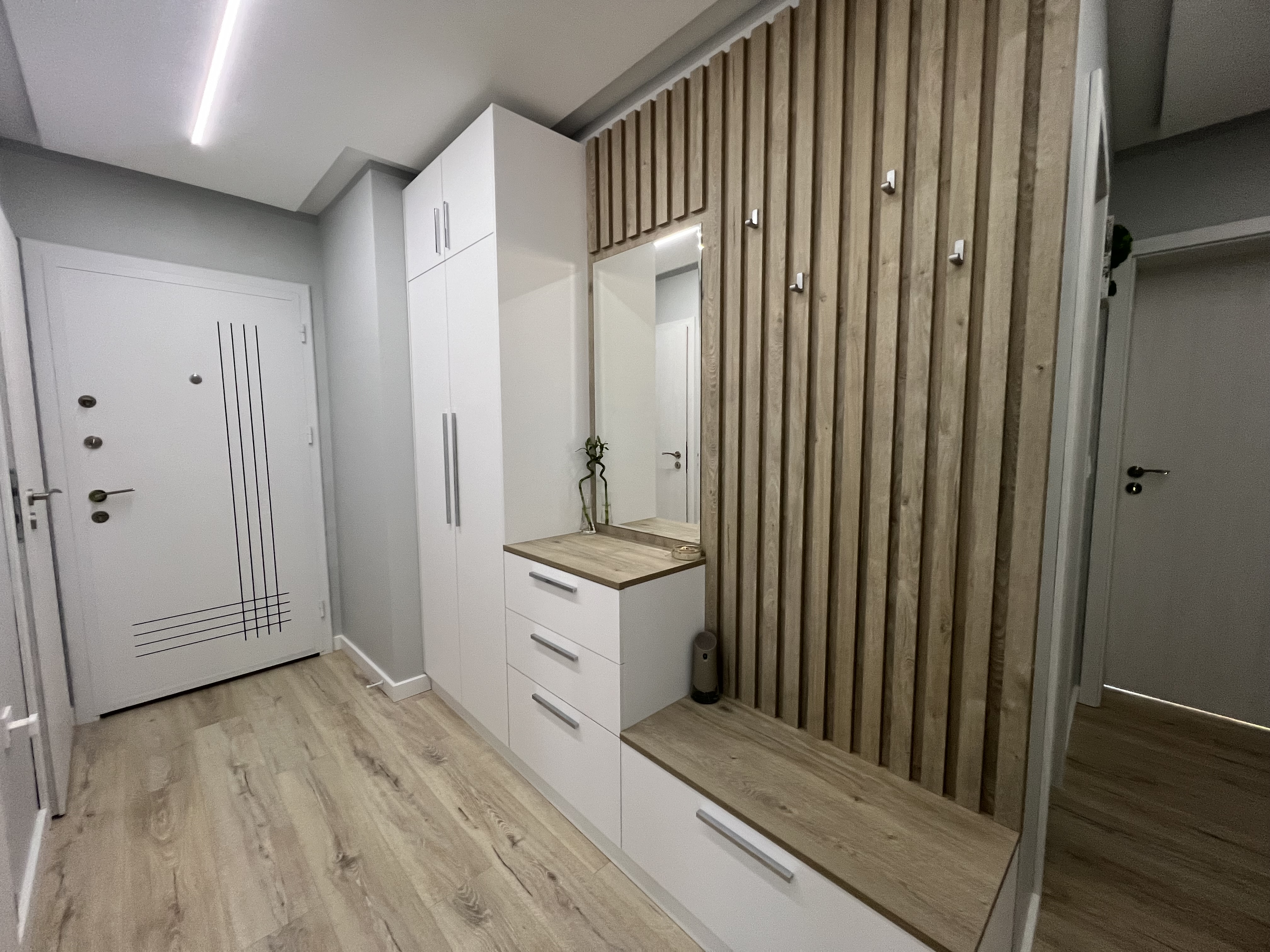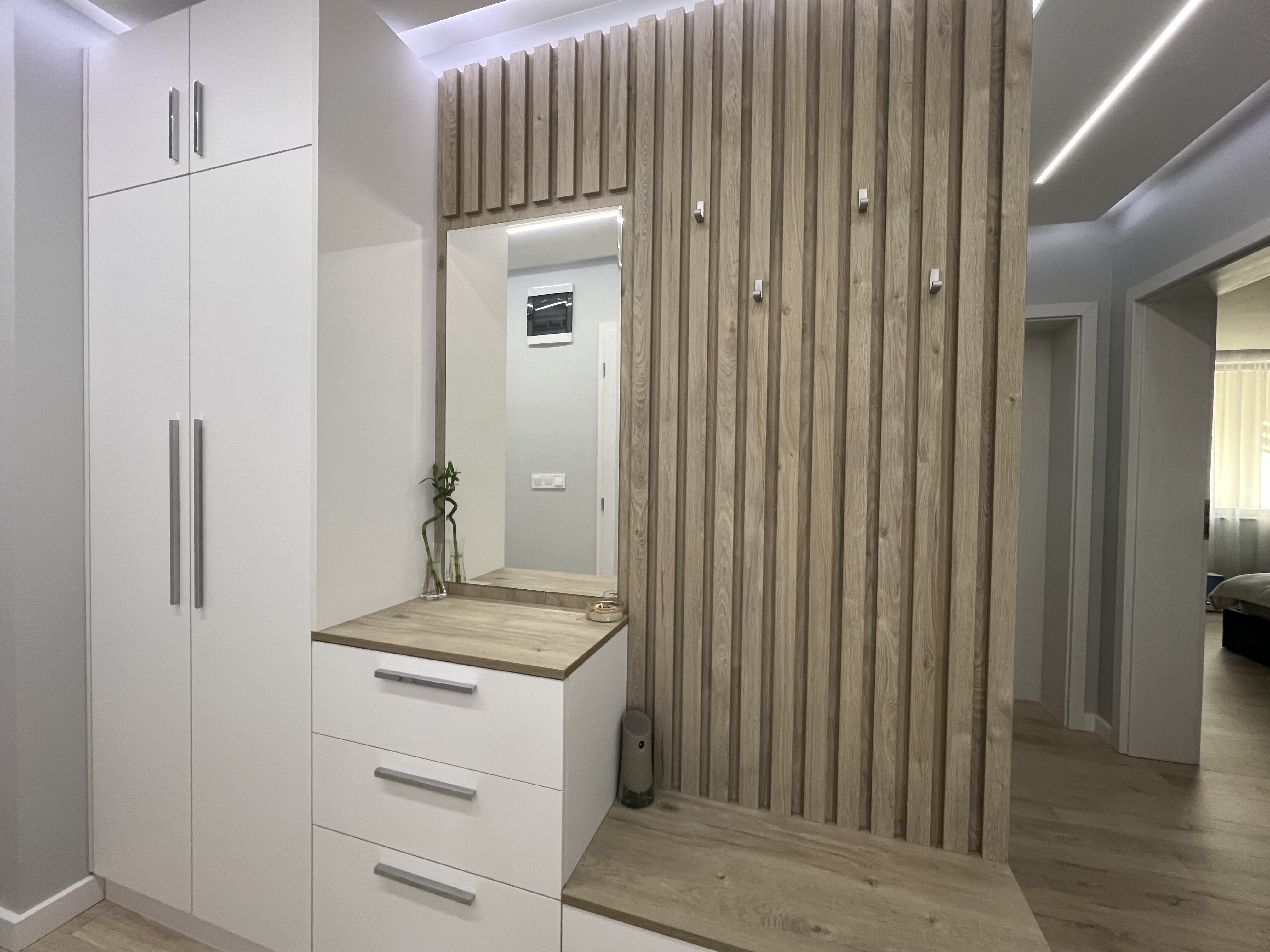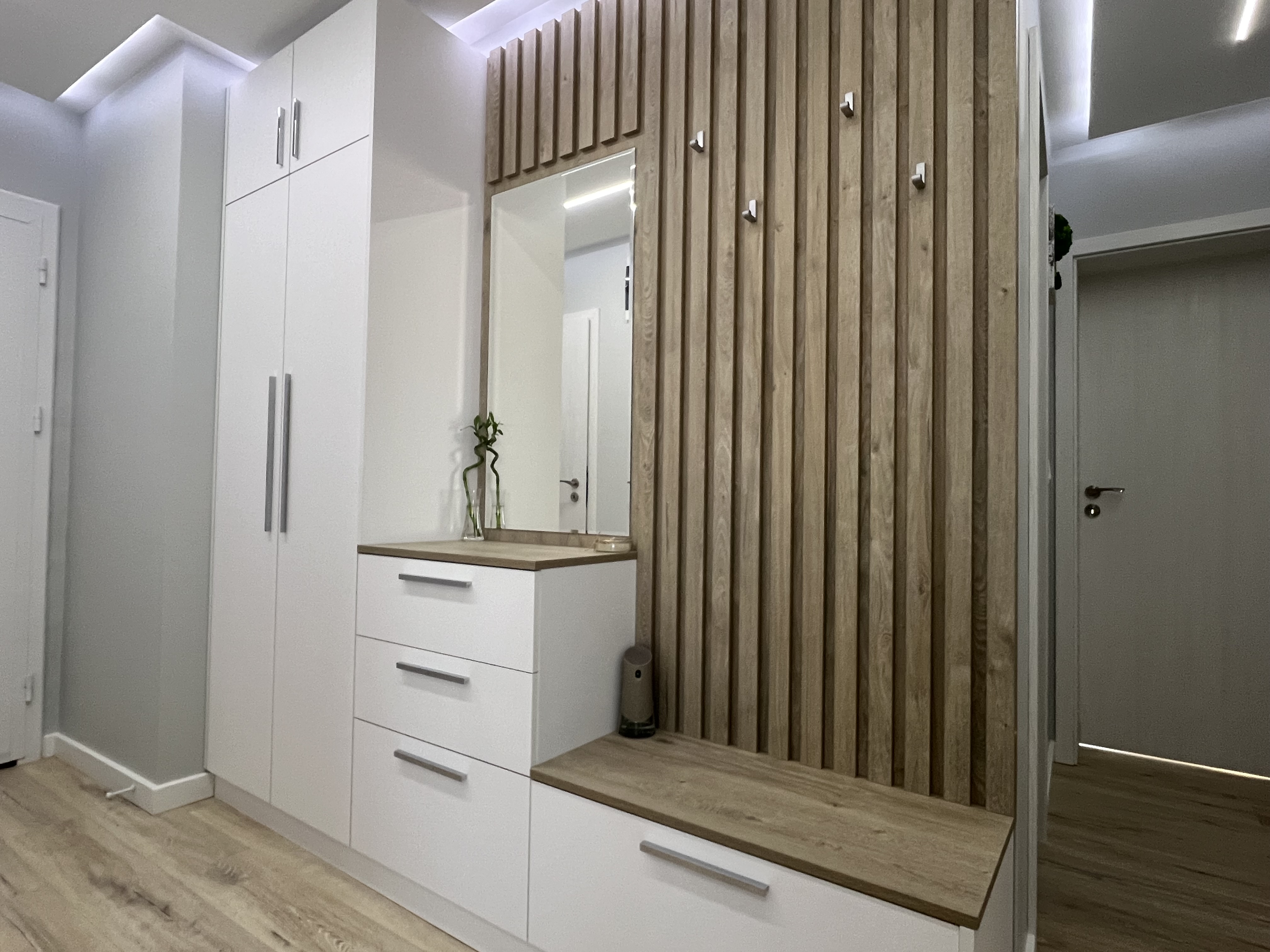 Портманто "Лион", изработено от МДФ бял мат и ПДЧ дървесен декор